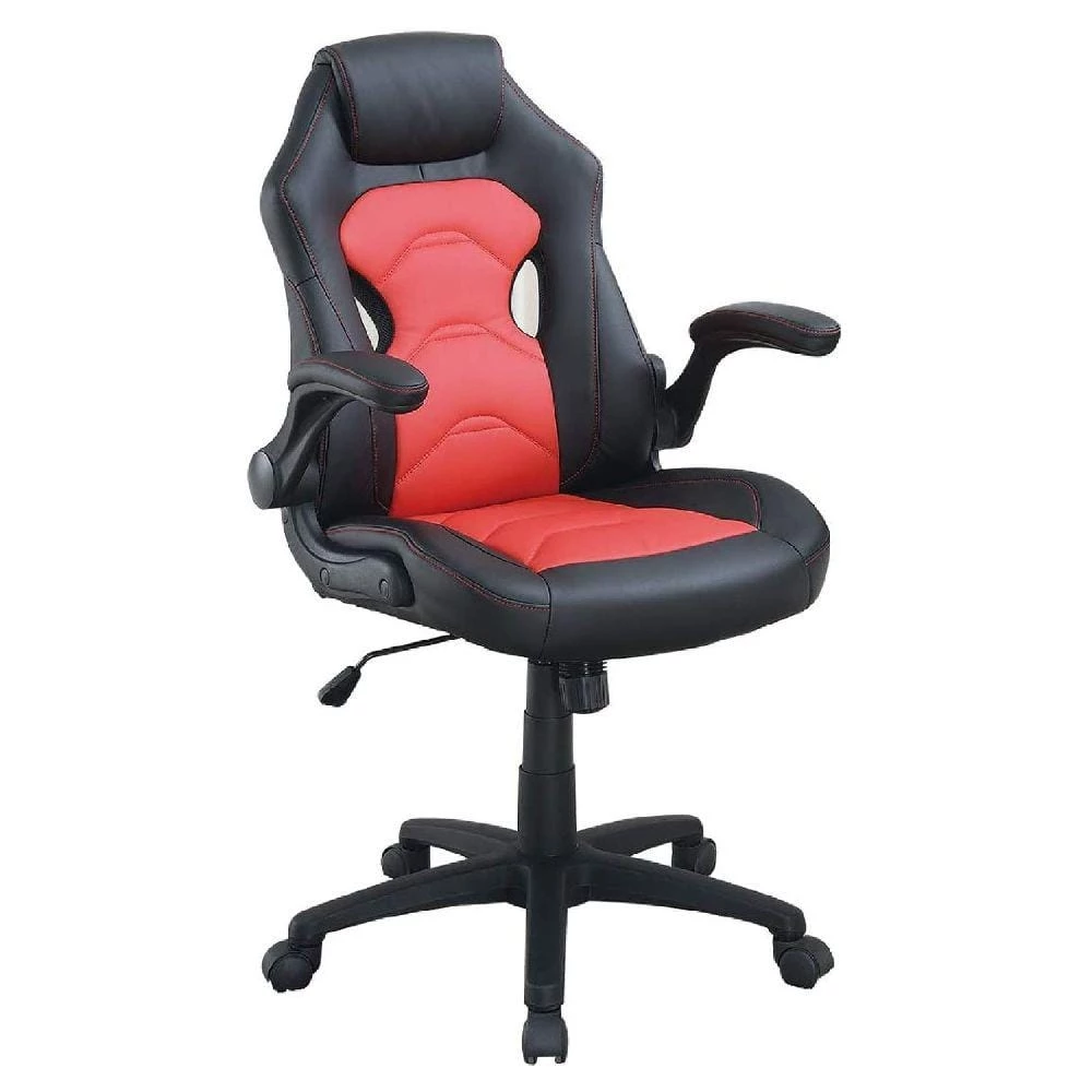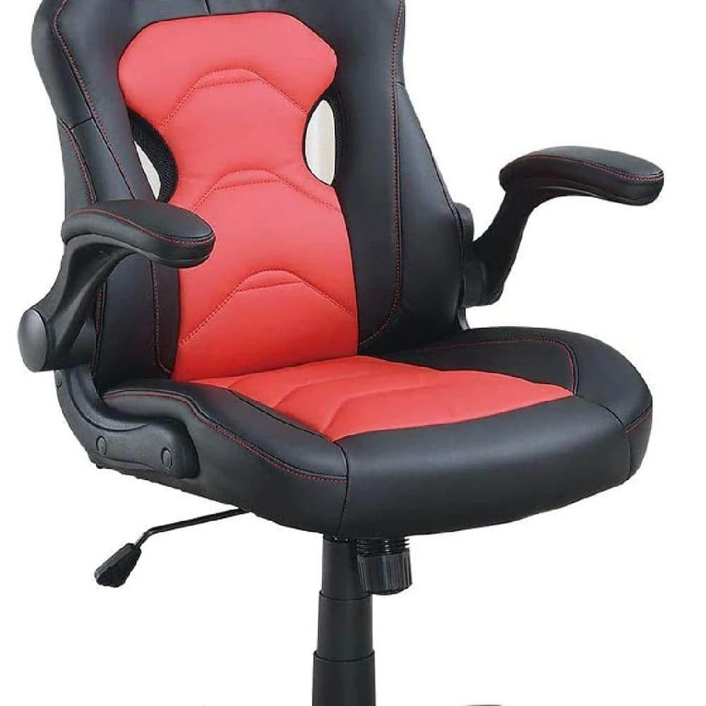 Stylize your workspace with the inclusion of this stunning office chair. This office chair is perfectly wrapped in leatherette upholstery and padded back gives it a comforting and soft appeal. The sleek sloped cushioned seat adds to the comfort while the adjustable height mechanism makes it functional at its best.