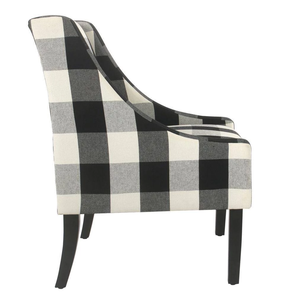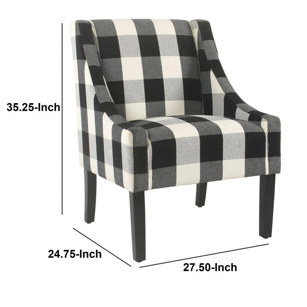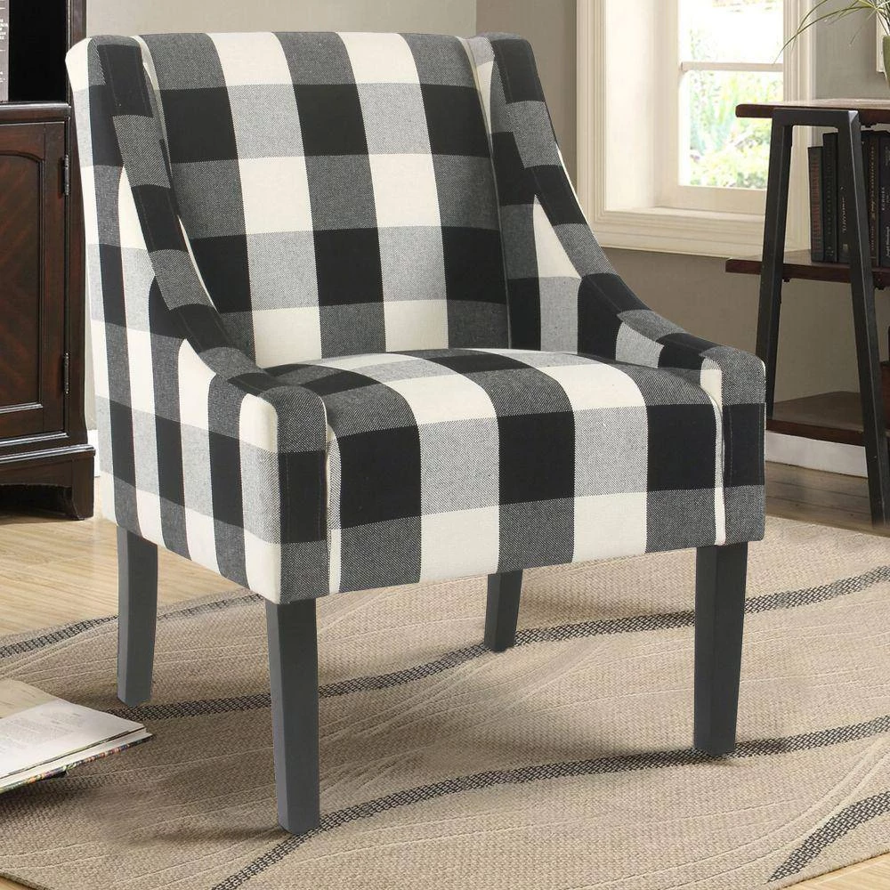 Lend a pop of pattern to your seating ensemble or accent the master suite in artful fashion with this stylish Accent Chair. Founded atop four black finished wooden legs, the frame of this chair is upholstered in soft fabric and it features a striking buffalo plaid pattern for added visual interest. The cushioned seat and backrest of this chair provides user a comfortable place to sit, while track arms curve up to create a classic wingback style. Add this chair into your living room, bedroom or common space and bring style to your home decor.