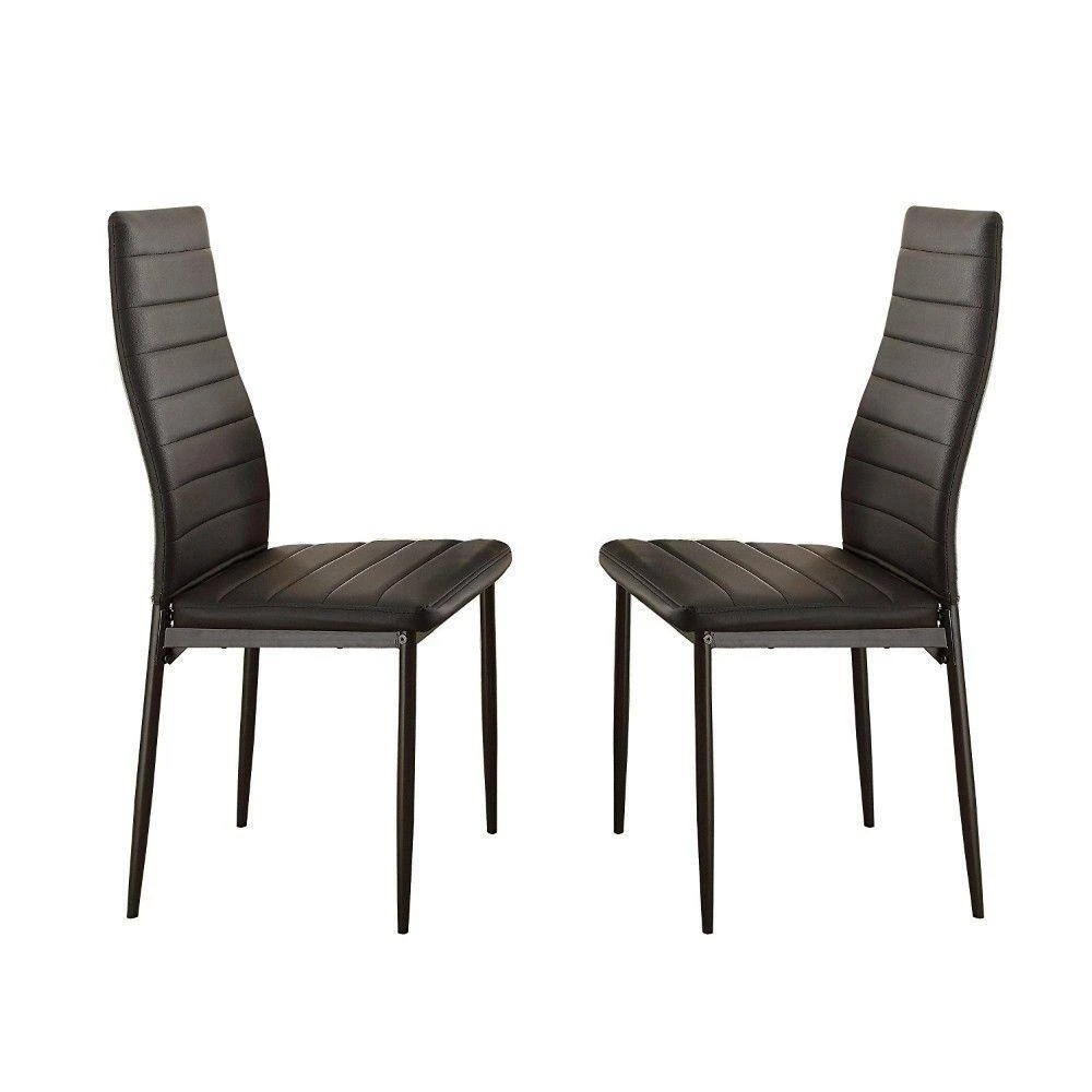 In-style and sleek, this set of 2 side chairs will influence your space and setting with a modern punctuation and draw striking statements. Crafted from bi-cast vinyl. The chairs come in a black shade that will fluently mix well with any color scheme and features slender legs along with slightly curvy backs.