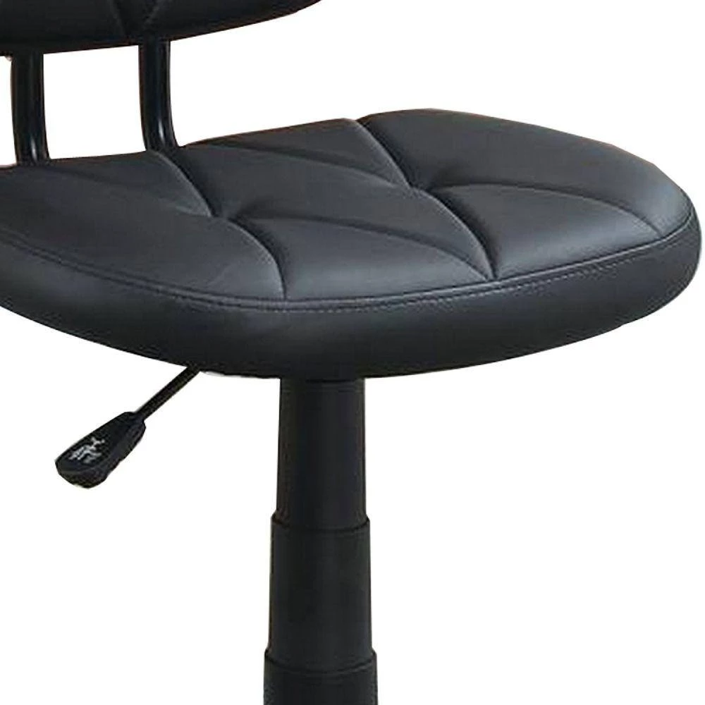Sit back and work for longer durations with the inclusion of this office chair. Upholstered in leatherette, it has been accentuated with diamond stitched detailing on the seat and back. The adjustable height mechanism adds to the functionality of the piece. The 5 star caster base adds to the mobility and hassle free movement.