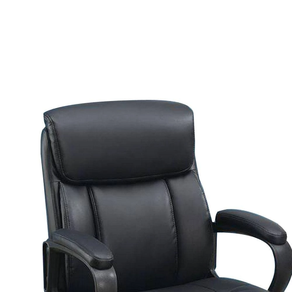 Add a perfect seating option in your office area with the inclusion of this office chair. Upholstered in leatherette fabric, it has top padded back that allows 1 to lean back and relax for a while. The curved open arms allows one to keep their hands at rest and maintain a perfect posture.