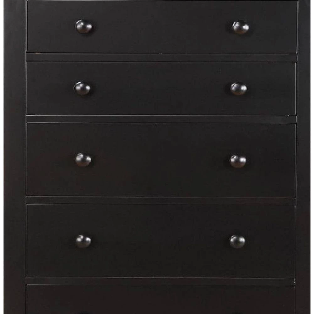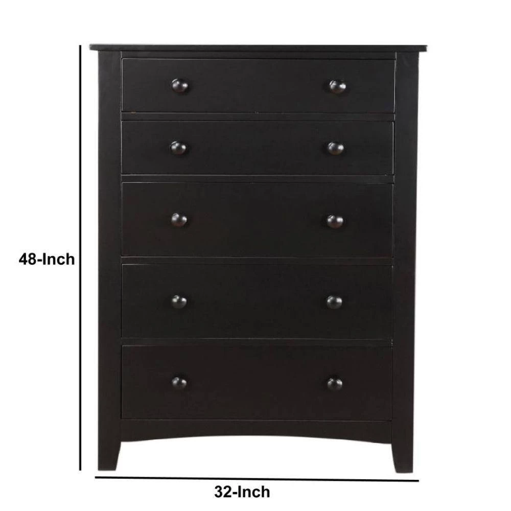 Enjoy the contemporary look of minimal trend using this black accent chest. Combining the smooth and delicate aesthetic of particle board, medium density fiber wood with the modern reflections of 5-drawers. This chest is a great addition for a clean, contemporary setting.