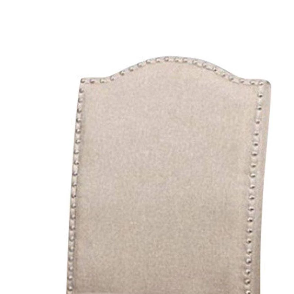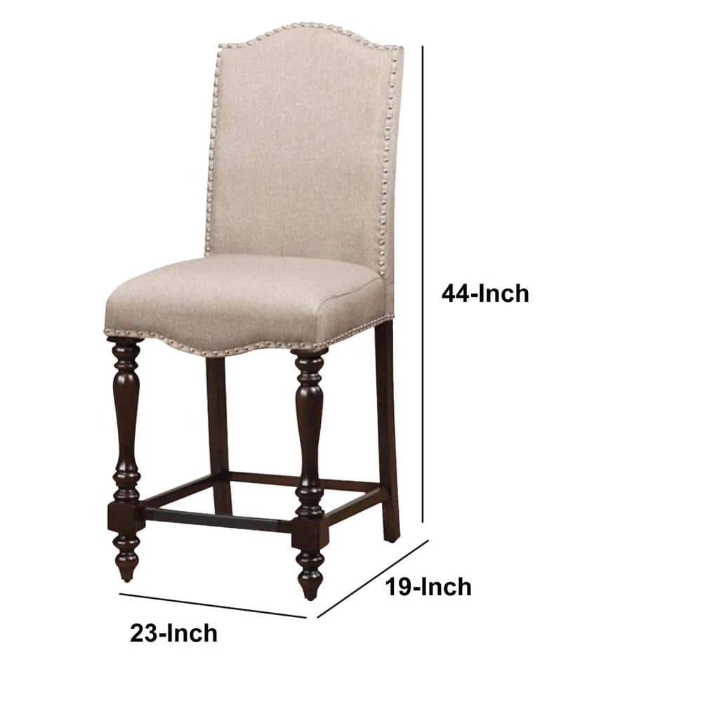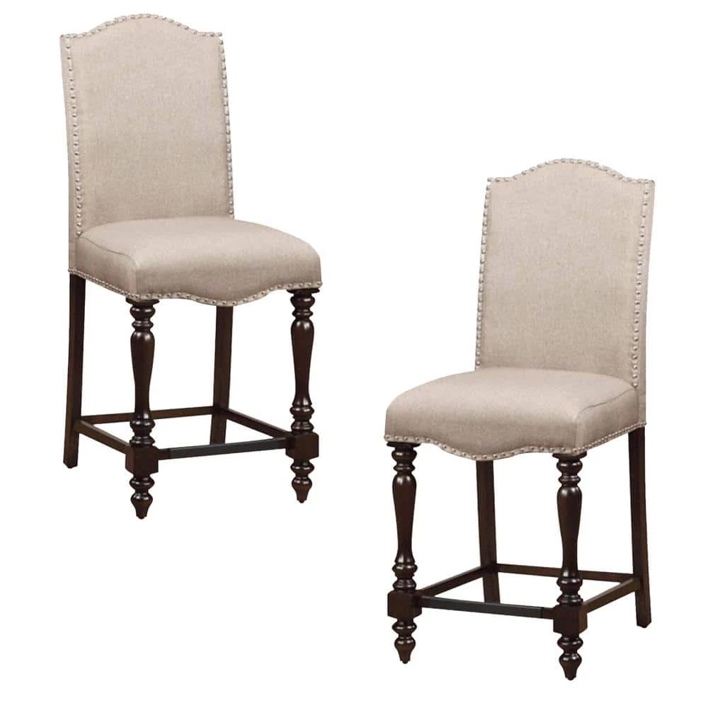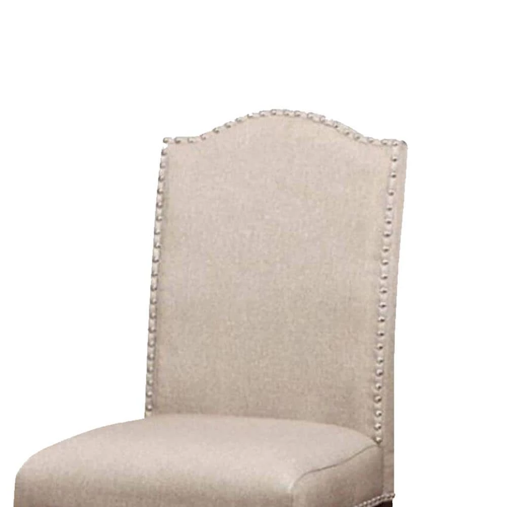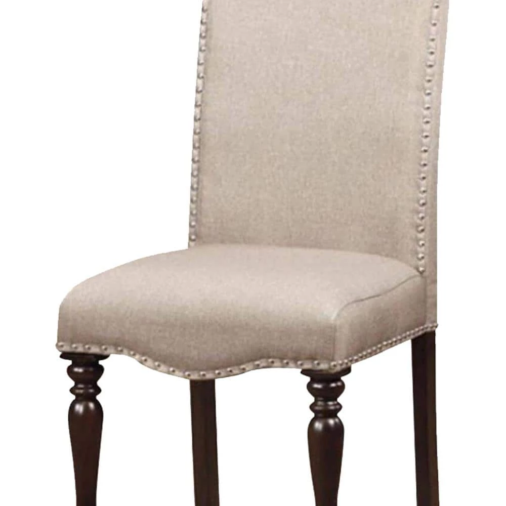 Bring charm and style to your living space with the inclusion of this sophisticated side chair, available in a set of 2. Constructed from solid wood, it features a fabric upholstered seat and backrest with nailhead trim details. It is supported by turned legs, adding to its style and providing stability.