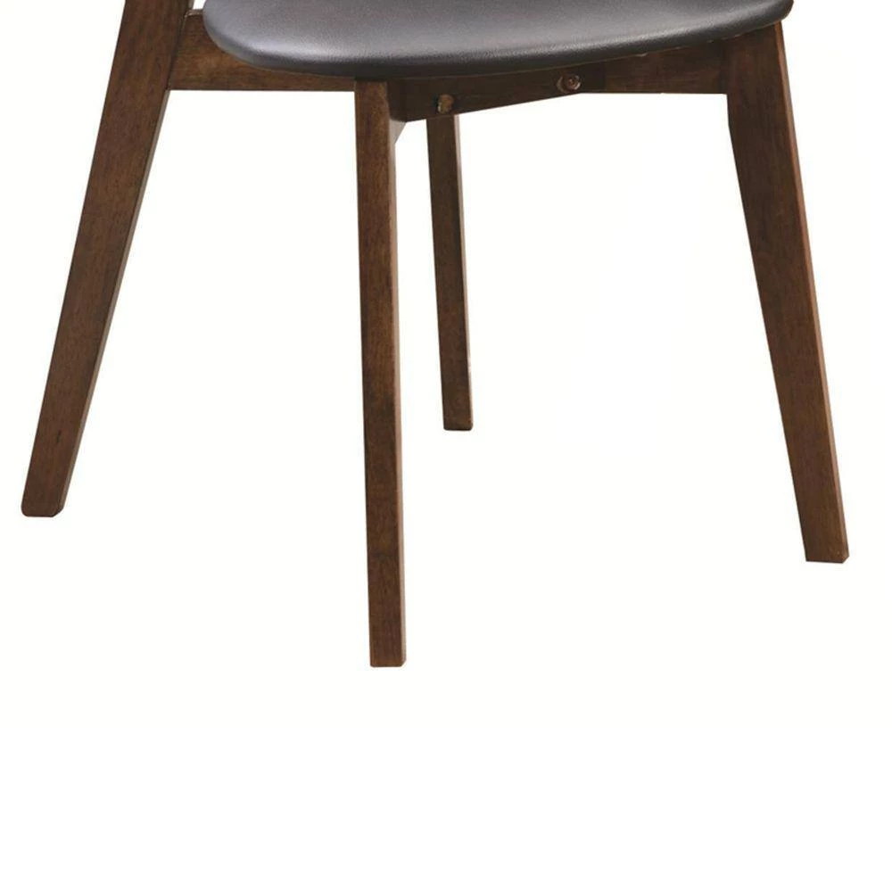 Captivating hearts with its pioneering mid-century inspired design, quaint side chair is an iconic dining chair of enduring appeal. Angled out splayed legs give this chair a trendy silhouette that is simple and sophisticated. Deep curved back adds comfort and give this chair a retro casual feel, while upholstered cushioned seating means you will love having your family and friends over for fantastic dinners when you know they get to sit in these comfy chairs. Finished in dark walnut color, this chair will brighten up any dining room.