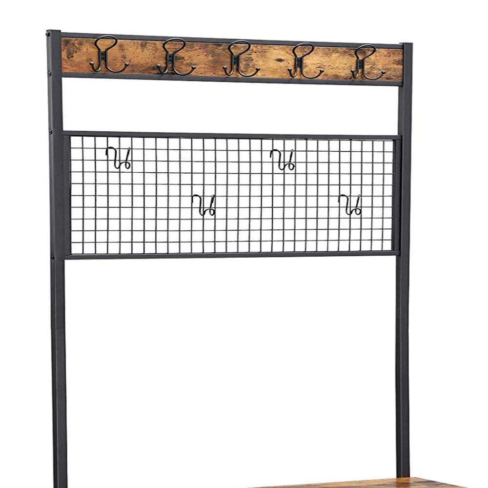 Bring this coat rack to eliminate the stacks of clothes and scattered shoes in your living room. Sturdily constructed with the combination of Metal and Particle Board, this rack features a built in bench which provides seat when you remove shoes and can be used to keep handbags or storage baskets. It has two wire meshed spacious shelves for holding your mostly used shoes, has five dual hooks and grid panel in the middle with four hooks for hanging your keys, umbrellas, coats, hats or scarves. Place this coat rack in your hallway or near to entryway for more easy access to your frequently used and necessary items. Also, it comes with the floor protectors that can prevent scratches on the floor and also can be adjusted to provide stability in the case of uneven floors.