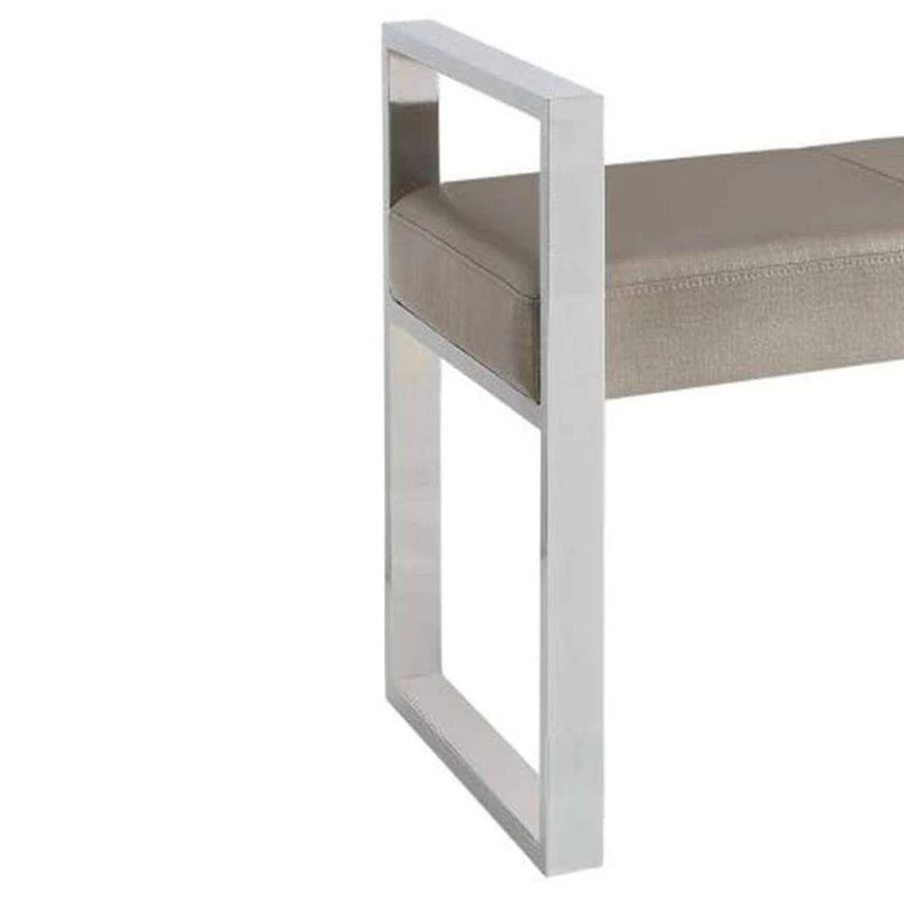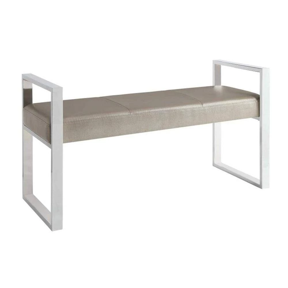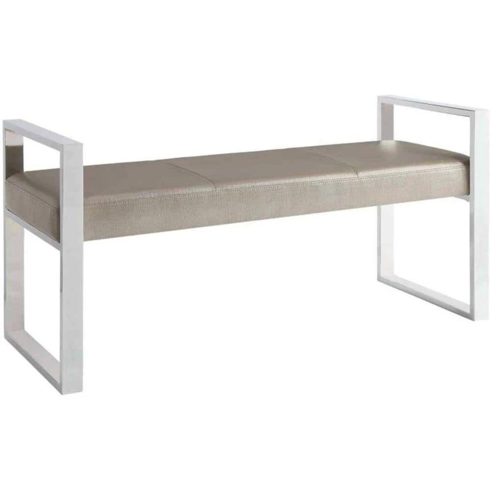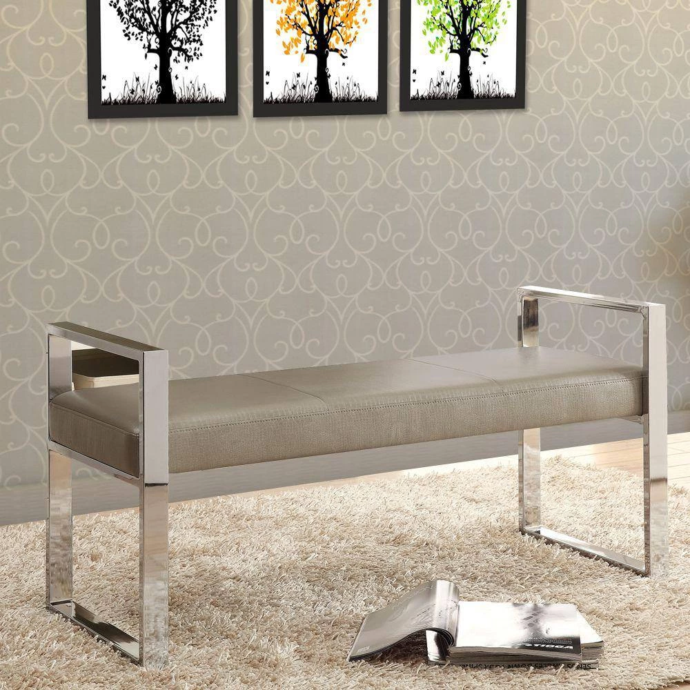 Enjoy a relaxing afternoon in your living space with this modern style metal bench with a cushioned seat. Incorporating backless and armless design, this gorgeous bench is upholstered in a brown color faux leather. This chrome finish bench adds a neutral touch, which makes it suitable to be paired and placed in any corner of your humble abode with different styles and colors of furnishings.