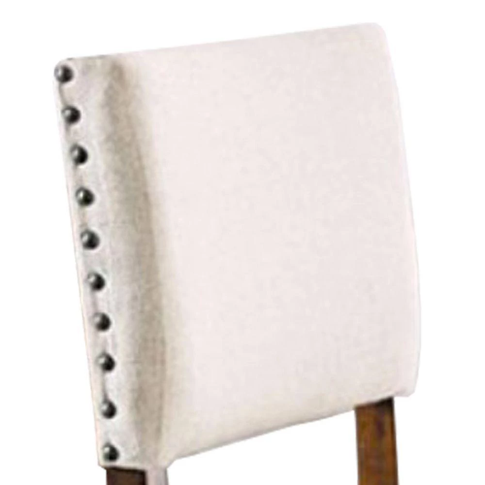 Rejuvenate your living space with a traditional look by the inclusion of thus counter height chair, available in a set of 2. Constructed from solid wood and veneer, it features fabric upholstered seat and backrest, showcasing nailhead trim details. It is supported by block legs, incorporated with footrest.