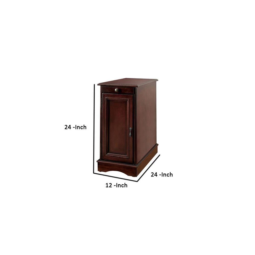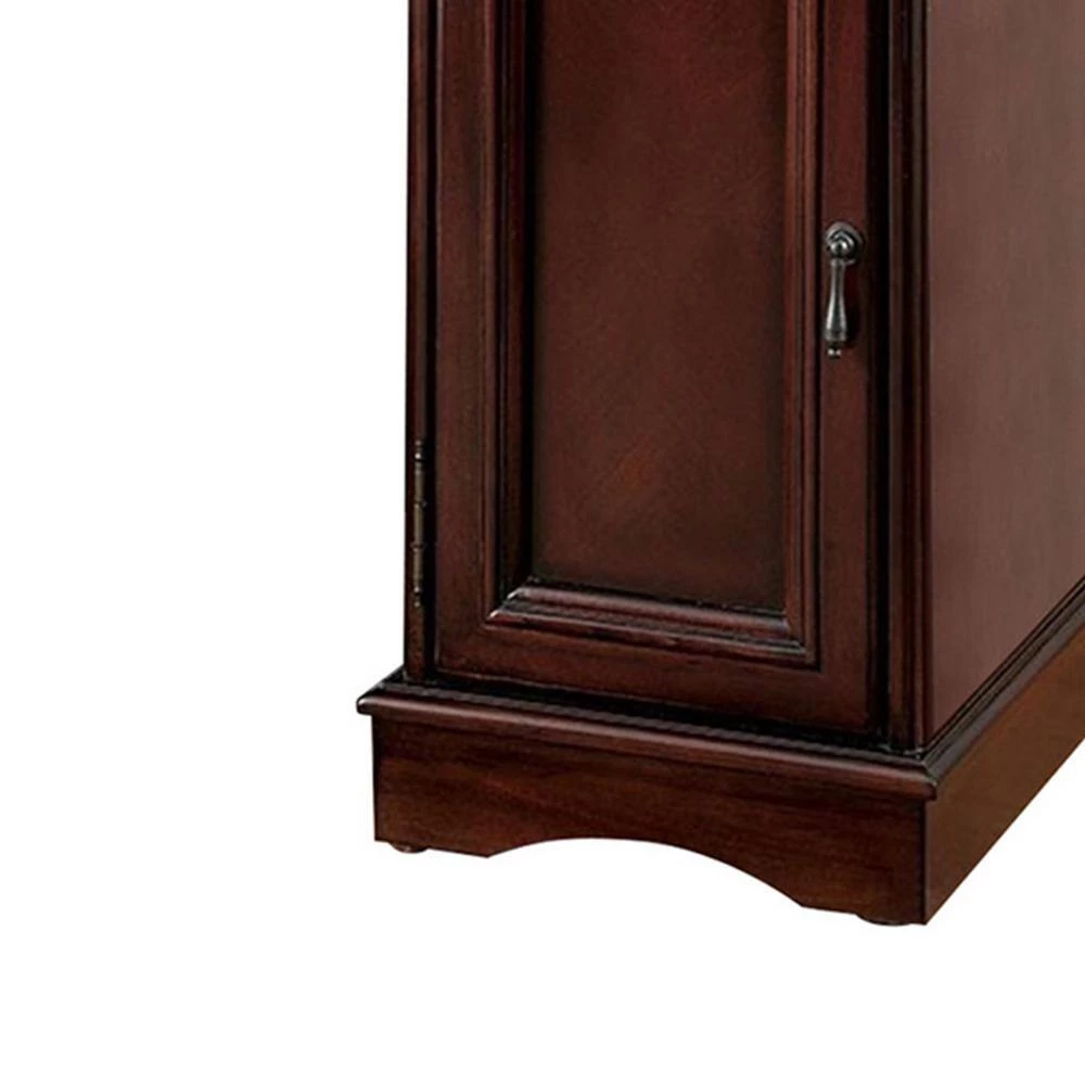 Add elegance and functionality to your interiors with this handsome tech friendly designer side table. It has an incredible feature of a built-in USB and power port dock, which can be helpful in charging your mobile or any other electronic device, whilst you can also conveniently place your drink on the pull-out cup holders. You may also store magazines and books in the cabinet storage compartment utilizing it to its fullest ways.