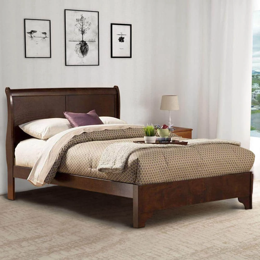 For a relaxing and lovely sleep we bring to you this cozy option in the form of this massive comfortable Queen Low Footboard Sleigh Bed made of Rubberwood Solids and Poplar Veneer. This bed with a mesmerizing spread and square shape maximize your room’s functions. its modern and fashionable style look makes this bed distinguished by the slightly antique yet stylish look. This wonderful bed has a slight high rectangular head board in brown with square self-design on it that makes it look fabulously modern yet elegant and fashionable.