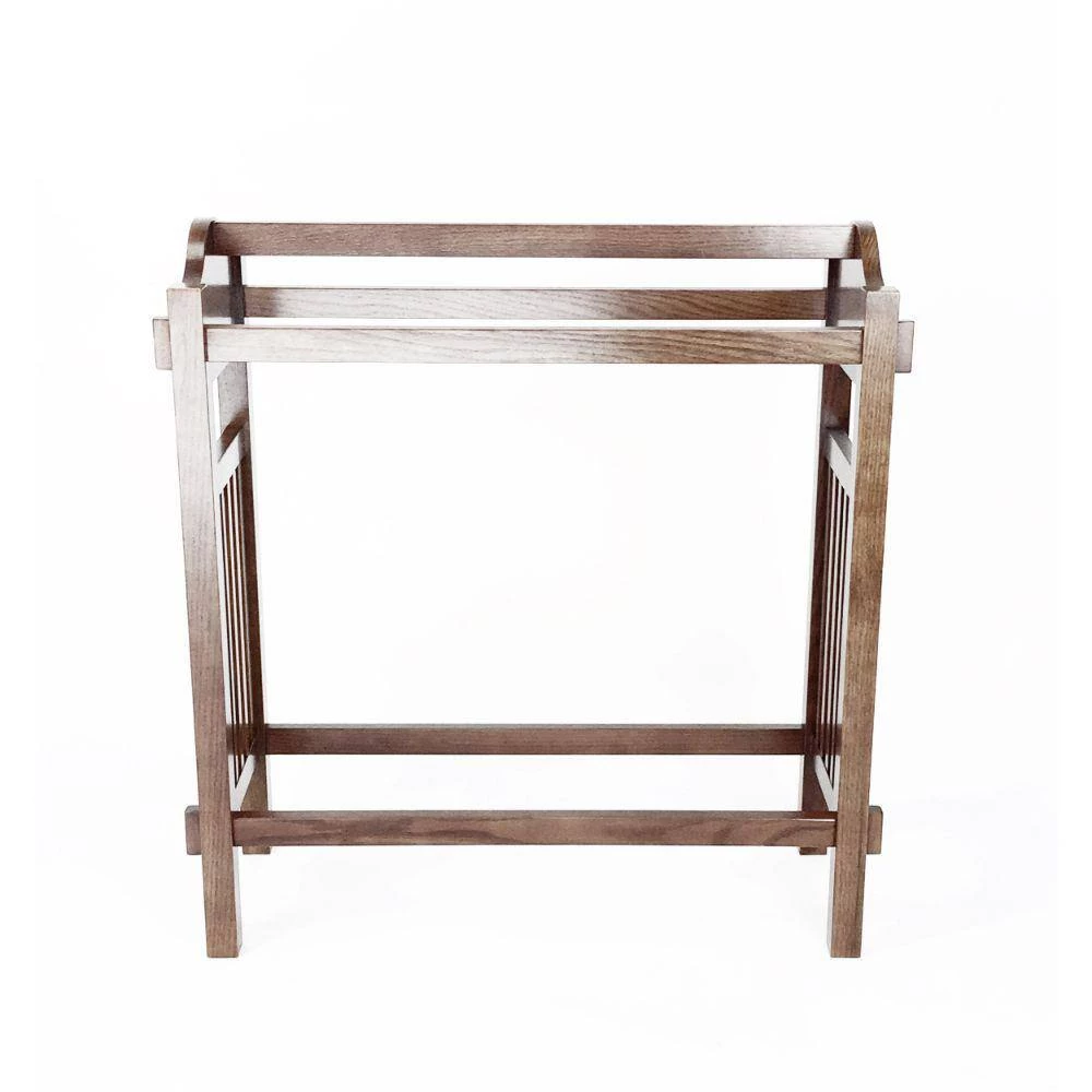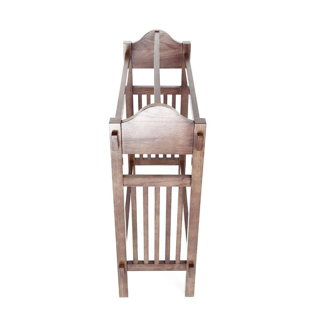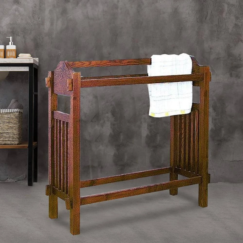 This quilt rack perfectly combines style and functionality, while providing a great storage option for your bedroom. Constructed from oak wood with oak brown finish. Features this classic rack with 3-bars attached with scalloped top and slatted provides easy hanging for your quilts or blankets.