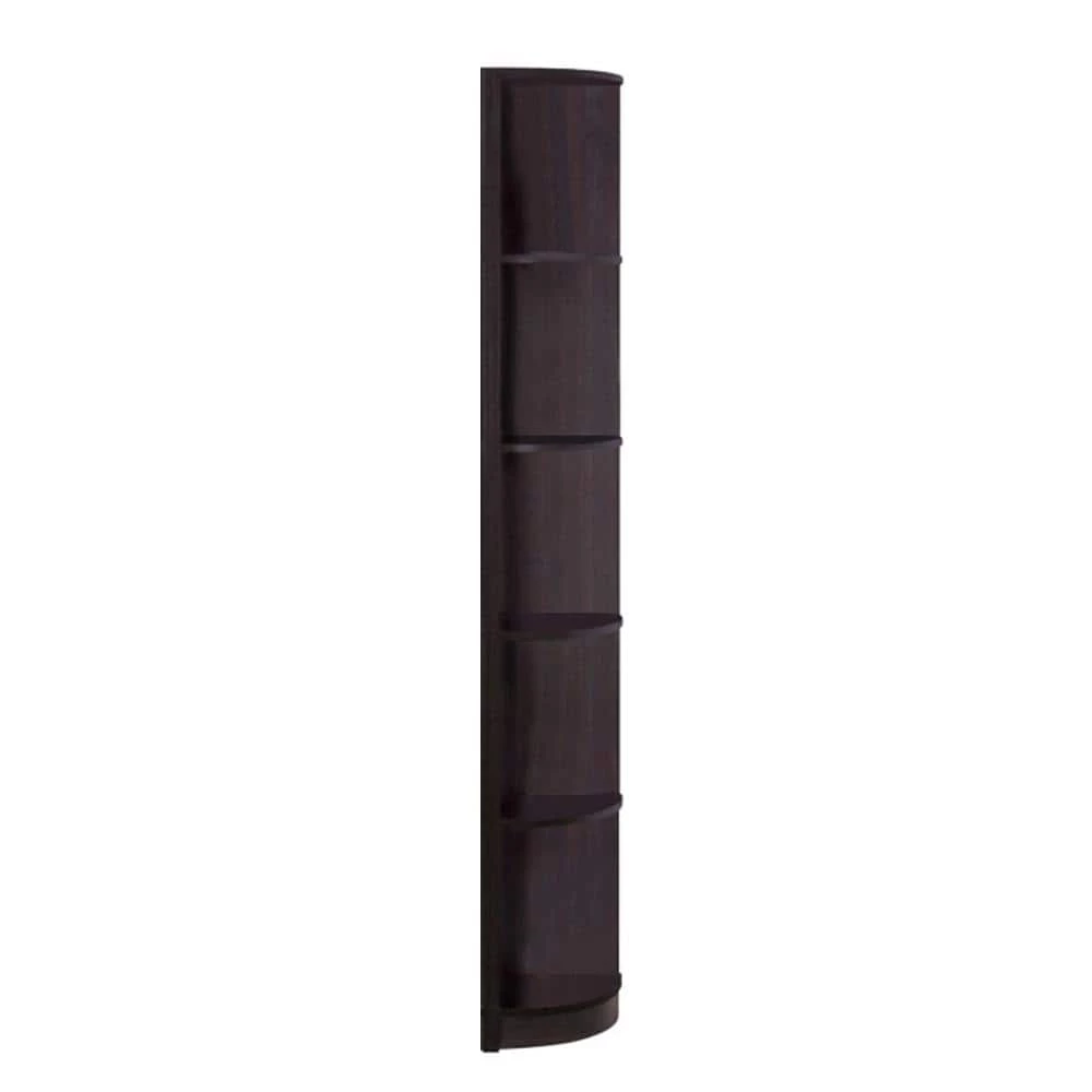 Beautiful dark brown finish corner bookcase has five open shelves offer more than enough space for your besides requirements, whether an alarm clock or a teddy bear or display items. The corner bookcase is finished in a long lasting dark brown laminate. It combines with curve front design. With this embellished corner bookcase you can enhance the beauty of your home decor. This sturdy and elegant corner bookcase is made from durable premium hardwood materials.