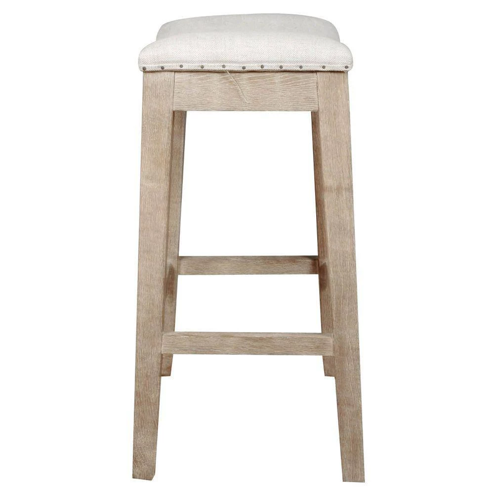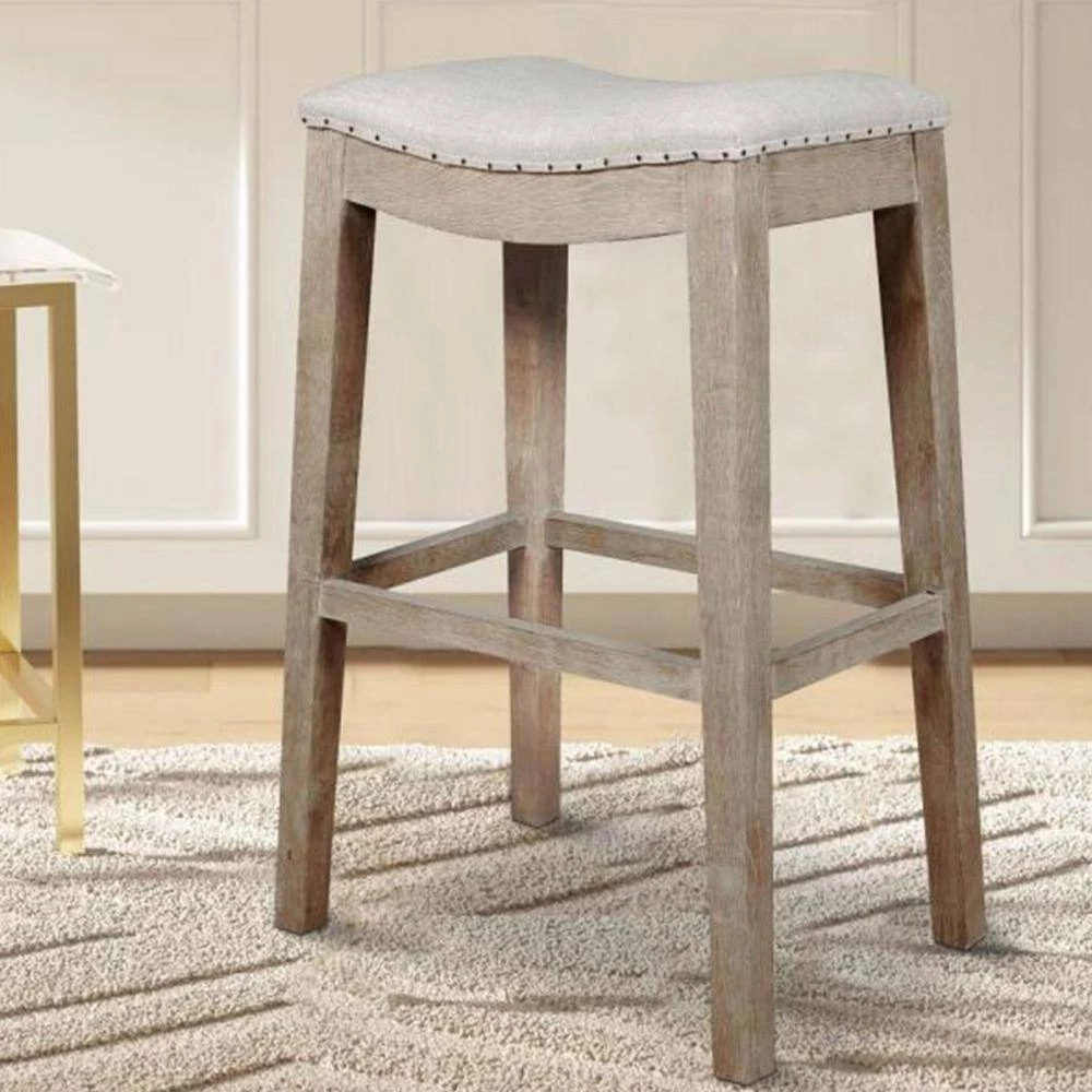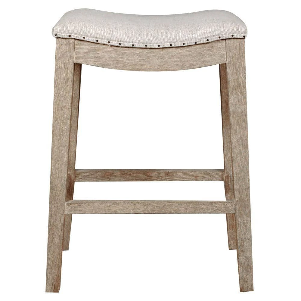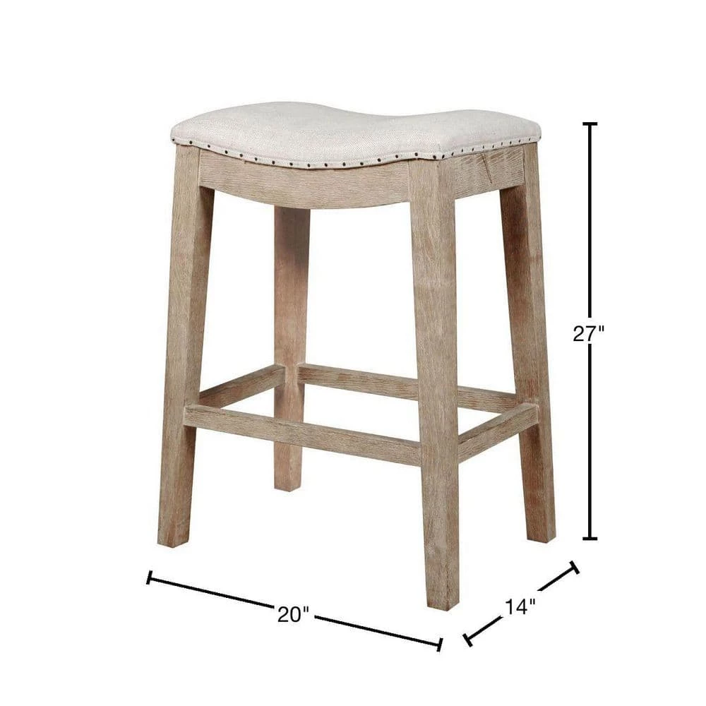 Add a stylish look to your kitchen or in-house bar with this counter stool. This stylish and sleek counter stool is made of wood. It is upholstered with Grey finish fabric with black nail tacks and stone washed brown finish frame.