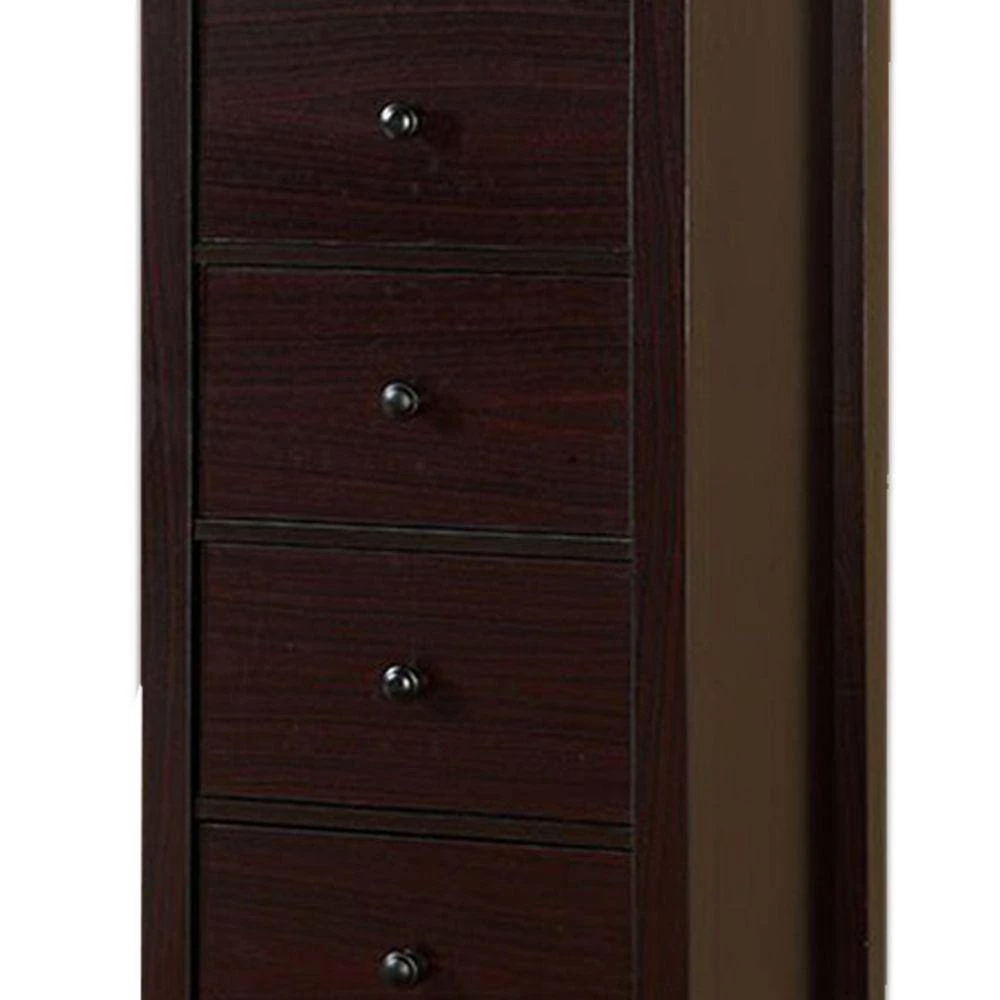Keep your items organized with this Chest which offers spacious storage with 5-smooth gliding drawers. Constructed from solid wood frame, it is bathed with striking brown color finish. It rests on straight legs. It will enhance the beauty of your space.