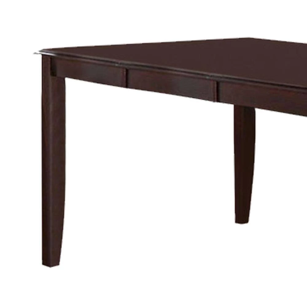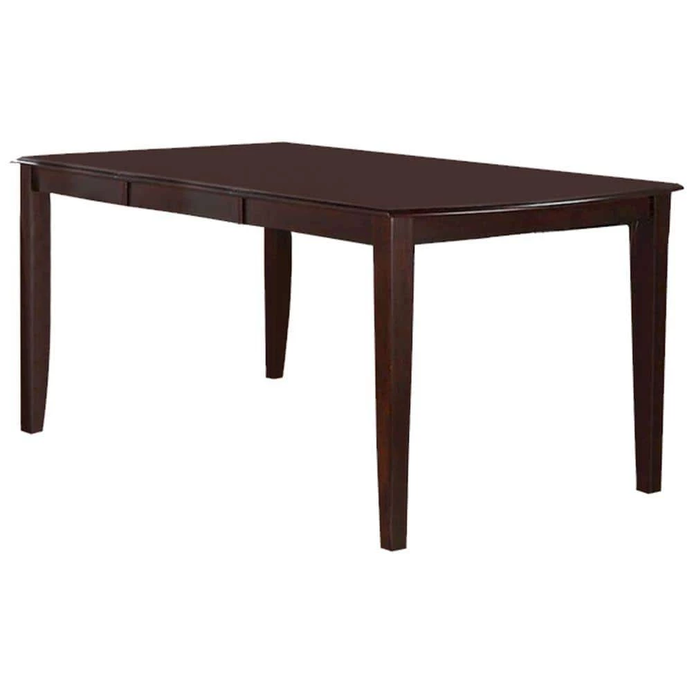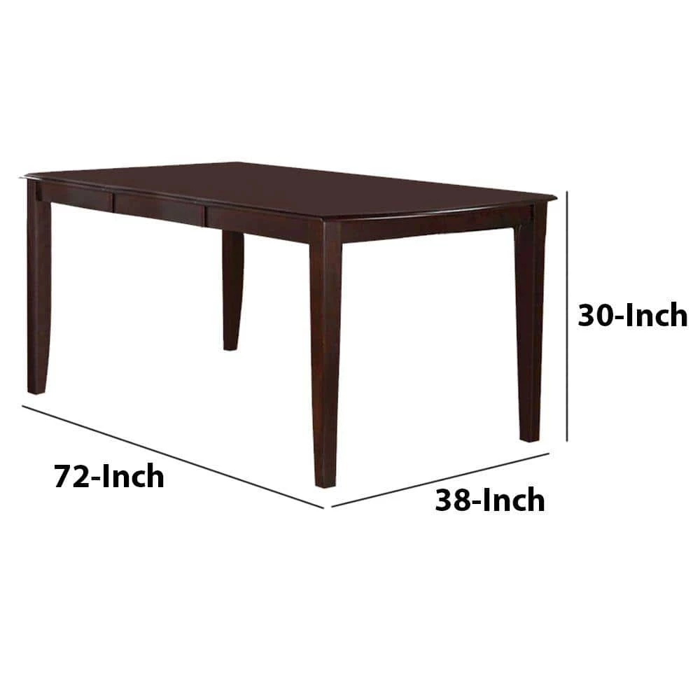 Relish your meals together with family and friends in this chic and stylish transitional model full of style and smartness. Constructed of solid wood the dining table has dark cherry brown finish. While its curvy corners with smooth edges and extension functioning and nice flawless finish adorns this table adding a modern flare to your interiors. Complement this table with matching dining chairs and bench, for its complete contemporary look.
