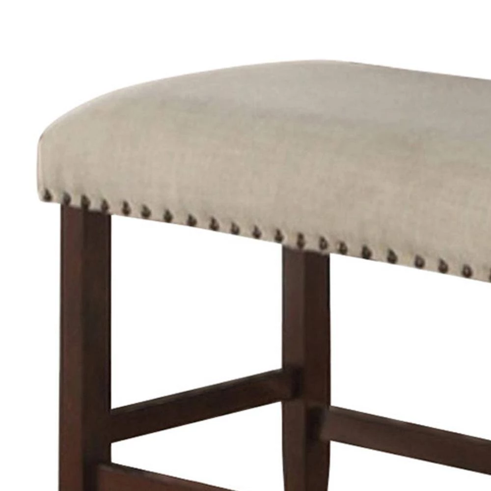 This beautiful rubber wood bench bring uniqueness to your home. This versatile piece looks great in any room and works well as an extra seating at your dining table. Its brown finish and the cream fabric upholstery makes it one of a kind character while nail trim head design adds to its glory.