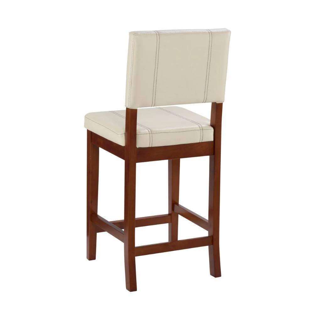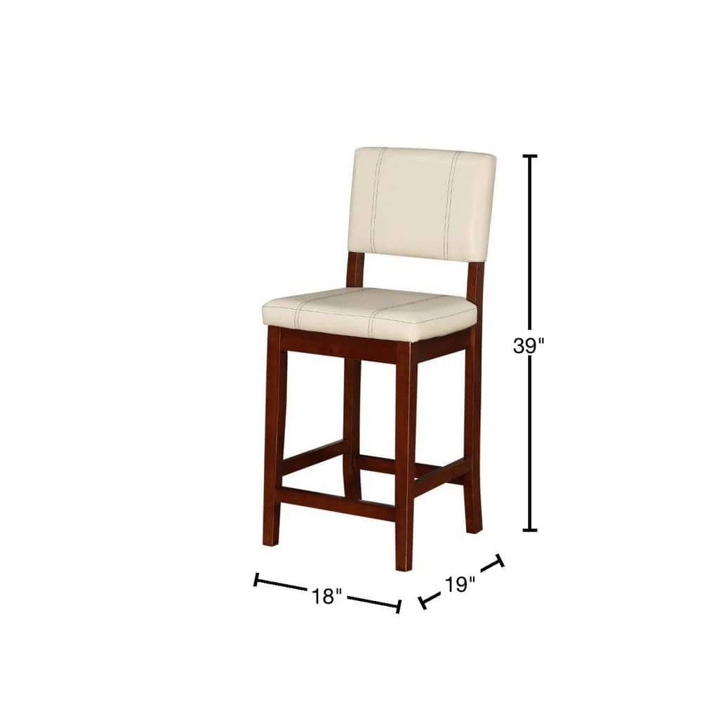 Bring home this beautifully designed counter stool supported on straight front legs and flared back legs with cushioned seat and backrest. It is made using a combination of rubberwood, hardwood, and MDF with cream faux leather upholstery on a cherry brown frame. This counter stool will be a perfect addition to your bar counter or kitchen island to provide comfortable seating.