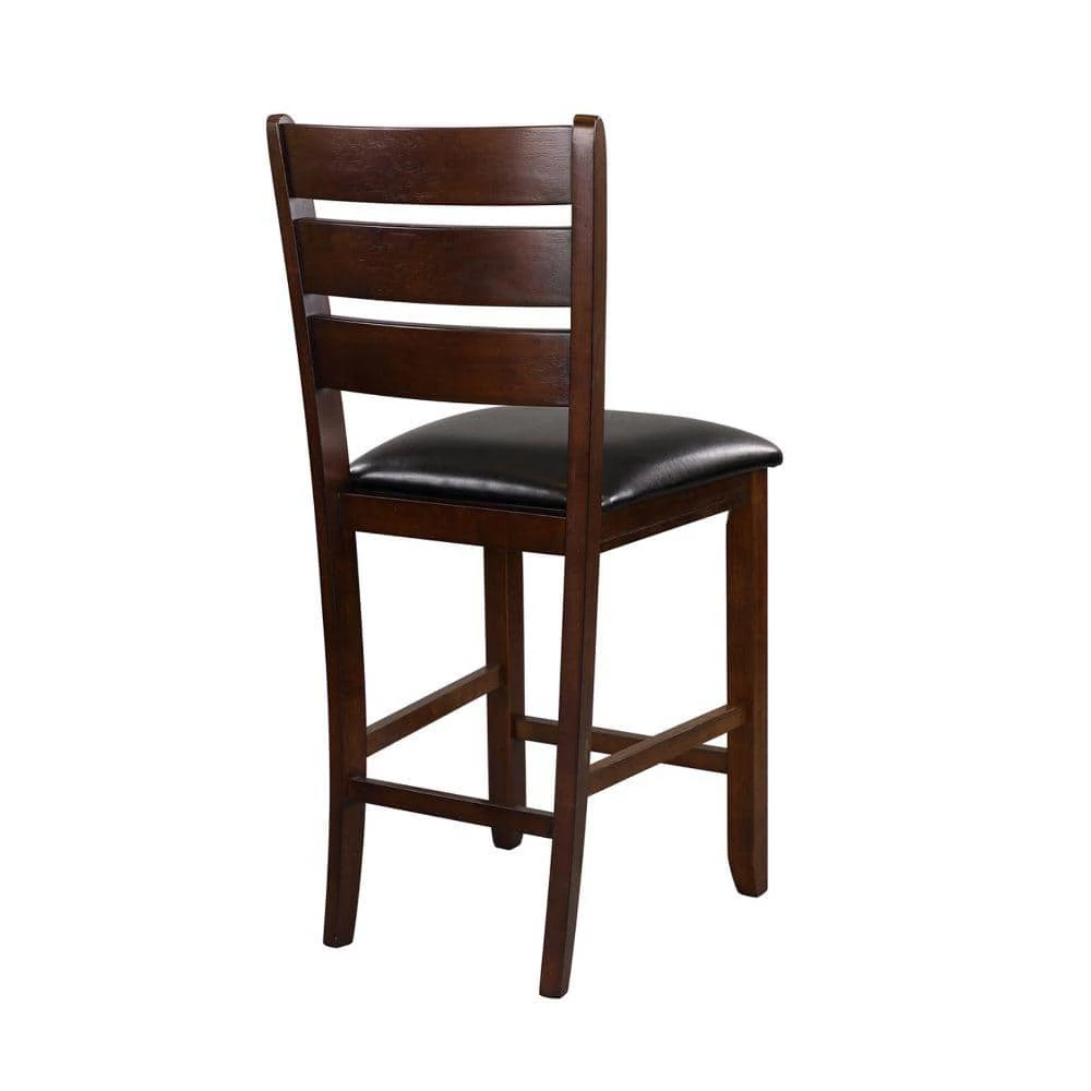 Create a contemporary drama to your space with this set of 2 counter height chairs that can be placed against your kitchen counter or with your counter height dining table. Crafted from quality wood, the chair comes with a footrest that makes it easy for you to climb on it. It features a bi-cast vinyl seat and horizontally slatted backs.