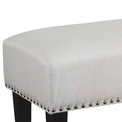 44 in. W White and Black Fabric Upholstered Accent Bench with Nail head Trim by Benjara