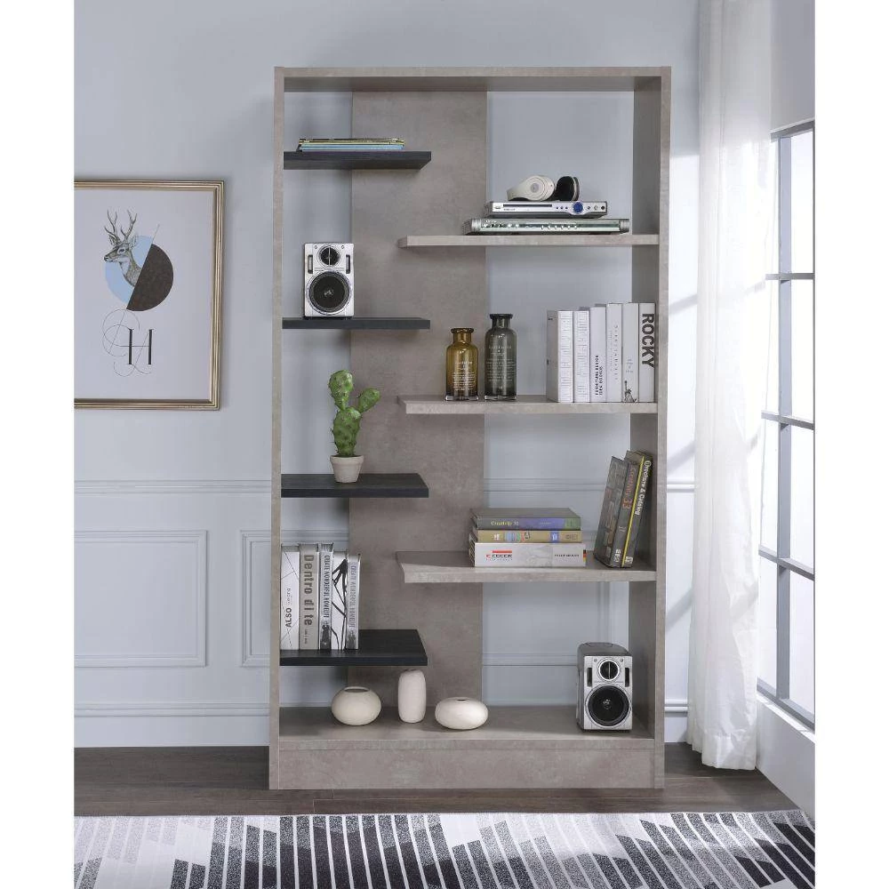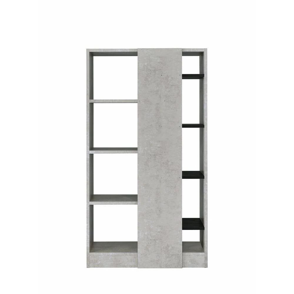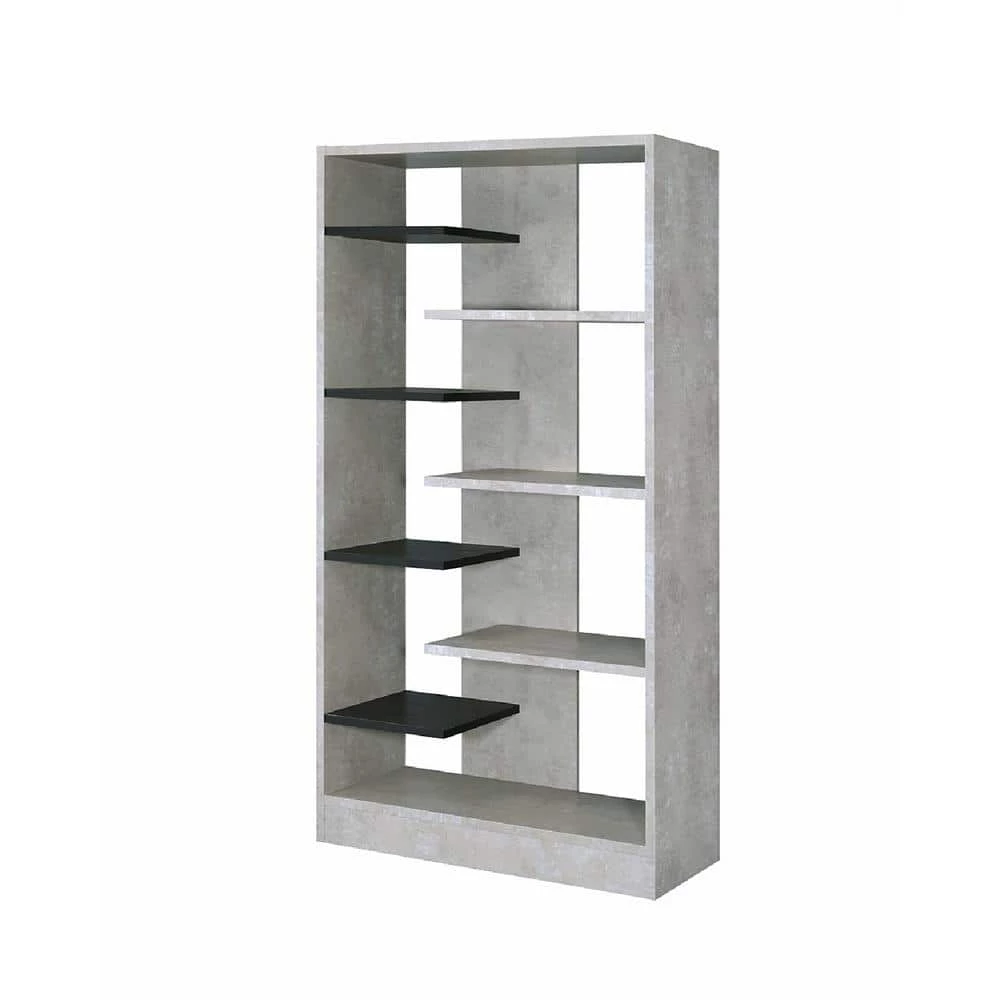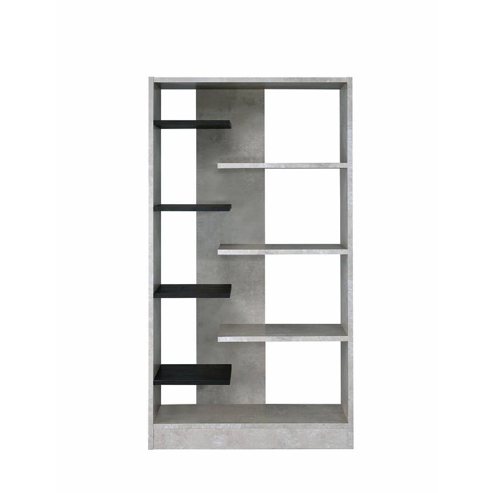 Revamp your book keeping area with this contemporary style bookshelf spacious bookshelf that add a stylish charm to your modern looking home. It is rectangular in shape and features eight open alternative shelves that supported by sturdy back panel and block base that offers stability. Constructed from good quality engineered wood and faux concrete that provide lasting durability, this sophisticated furniture piece is perfect to store reading books, journals, novels or decorative in one go. With the elegant combination of gray and black finish, this bookshelf is not only an incredible inclusion for book storage but also provides an alternative casual style while saving space.