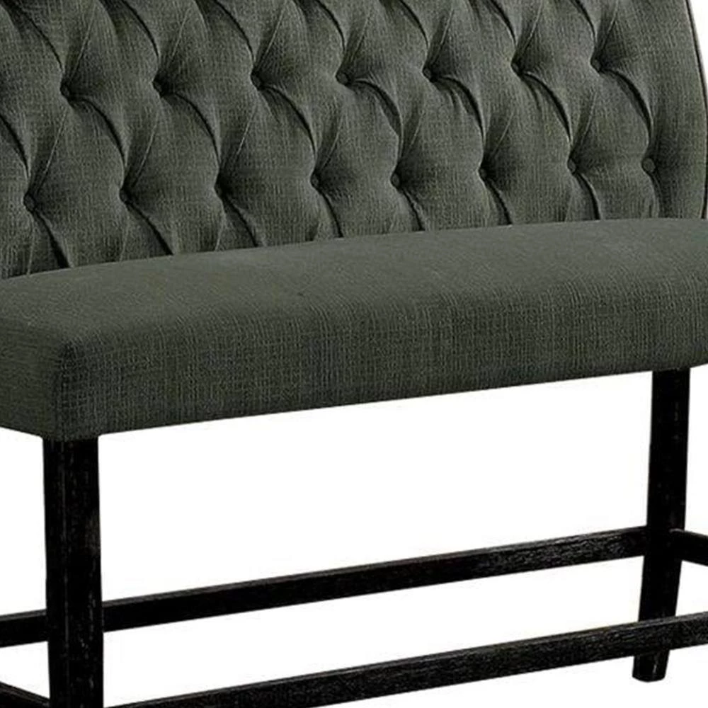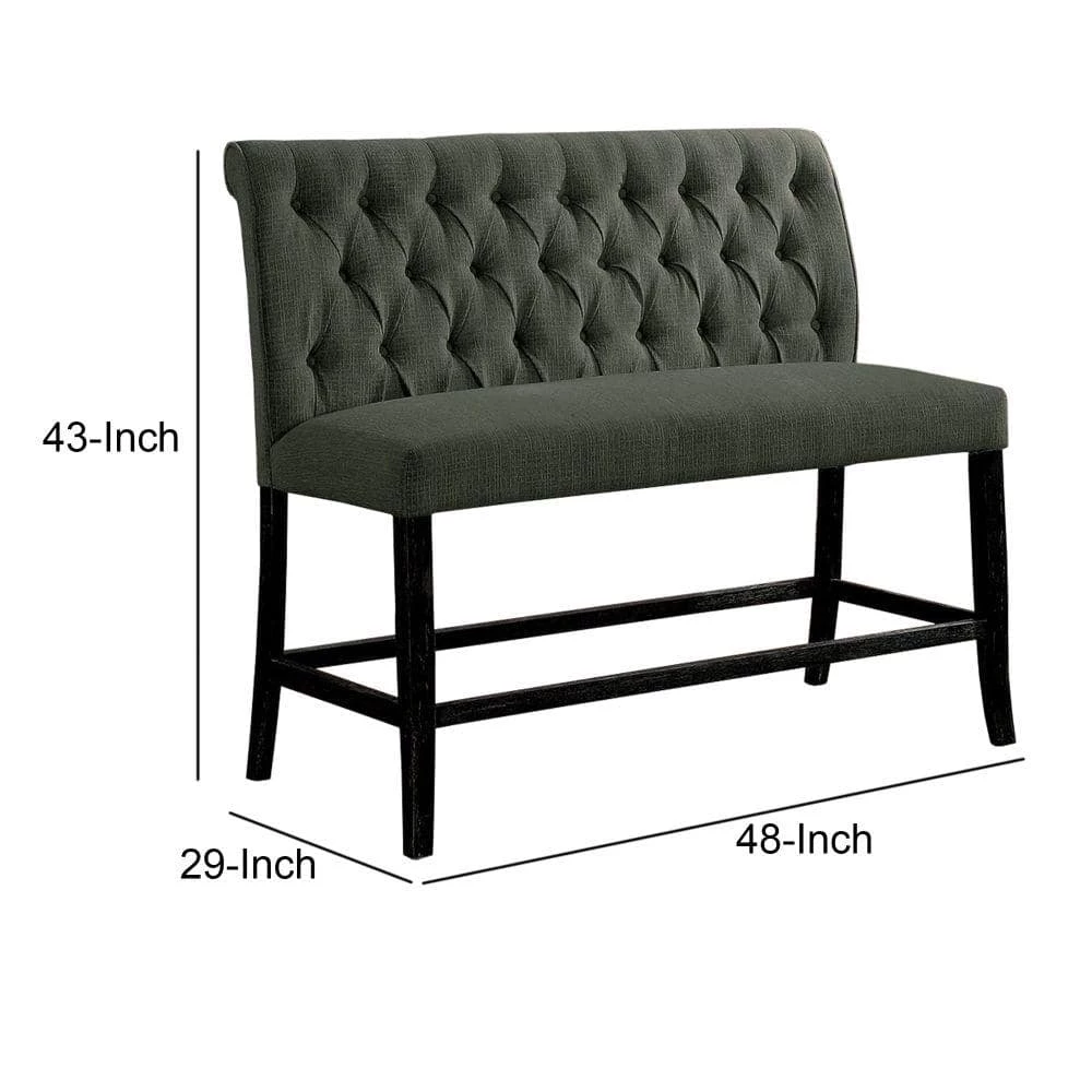 You can place this counter height bench to living room, entry way, bed-room or dining room. It is made up of wood in black finish and has gray chenille fabric upholstery which provide perfect contrast to this bench beautifully. It features fabric padded seat and button tufted back providing comfortable and pleasant sitting. This versatile bench is perfect in the dining room or anywhere you need extra, stylish seating. Adorn your bedroom or living room or entry way with this superb bench to awe your visitors.