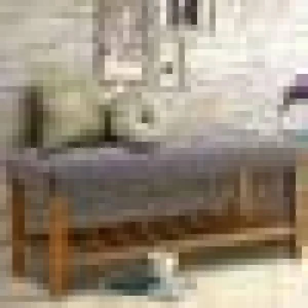 Simplistic lines pulling from the craftsman era and tapered legs to add some style, this bench with button tufted full box seat can easily compliment any home styling decor. The added width of the bottom slats serves as a function shelf. It will enhance the look of the room.