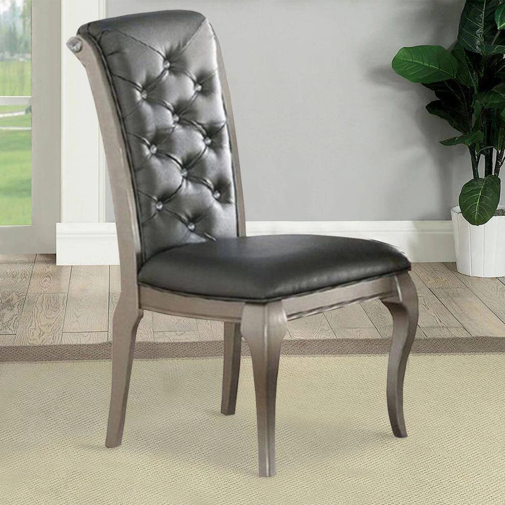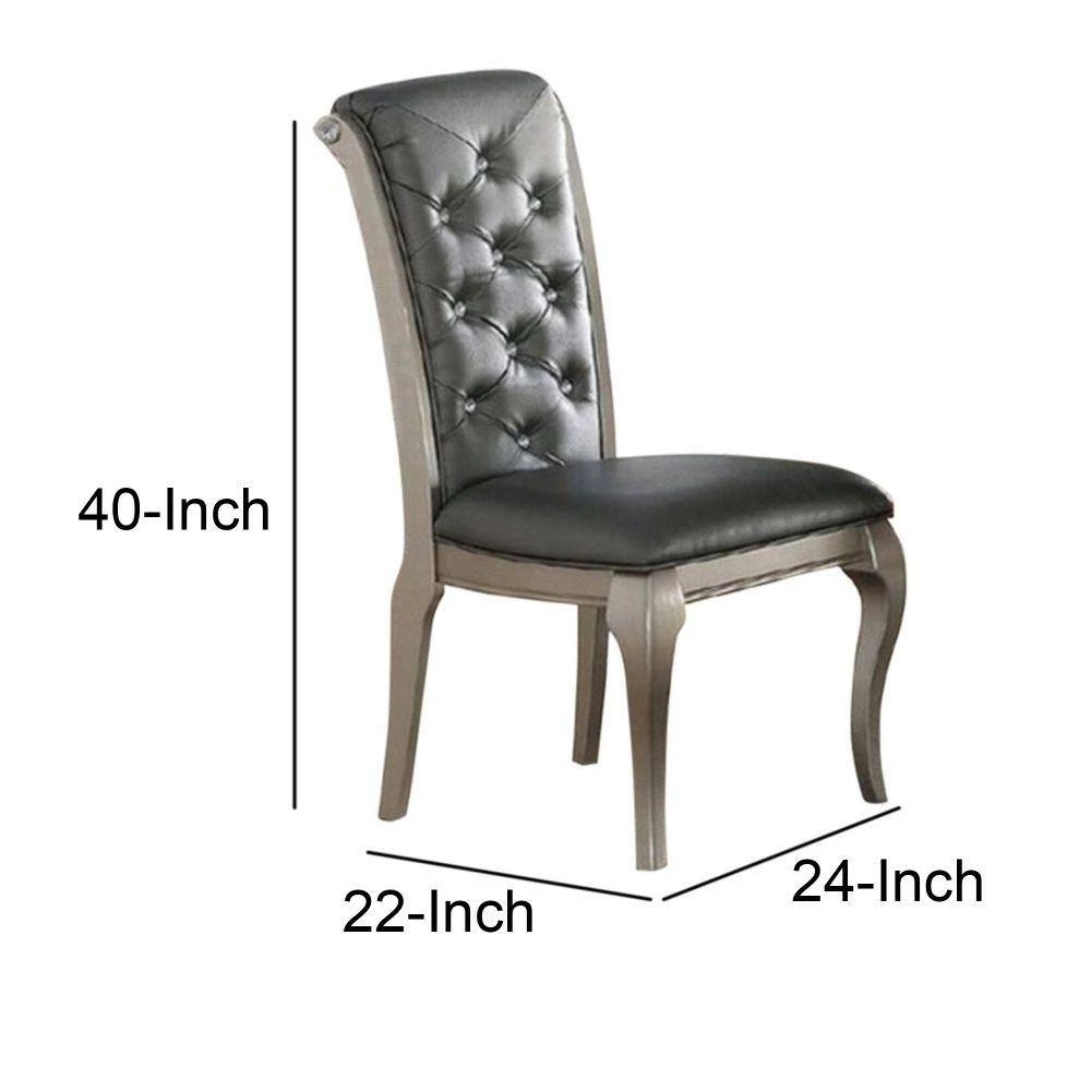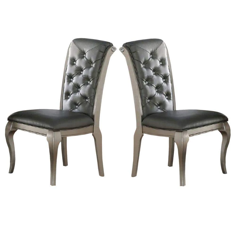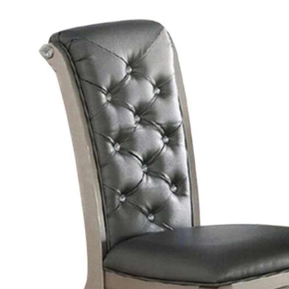 Taking inspiration from vintage designs, this set of 2-dining chairs still accomplishes a thoroughly modern aesthetic. The designed frame of each chair delivers a neat and clean aesthetic that will update any kitchen or dining room beautifully. Each chair is made to display the charm of rubber wood, and shiny gray upholstery making this set of chairs a must inclusion in any dining room. The tufted back adds to its glory.