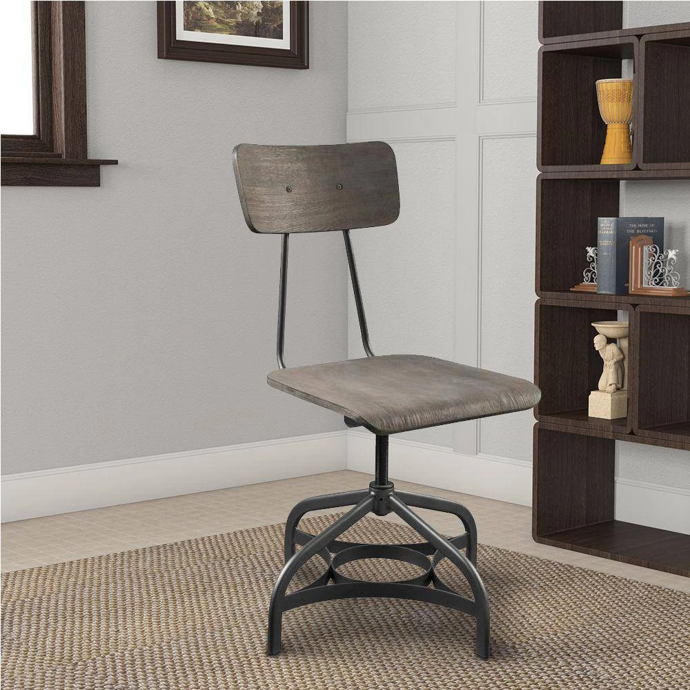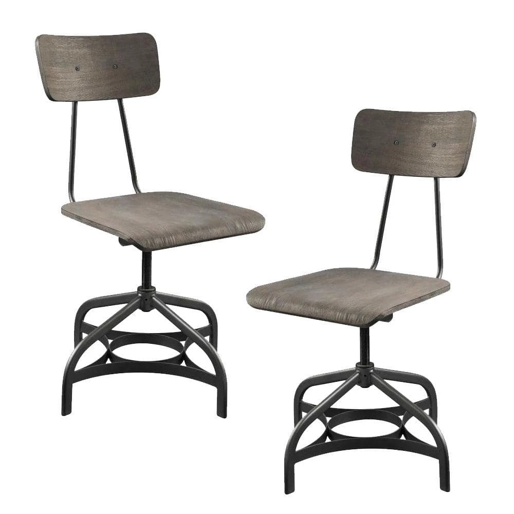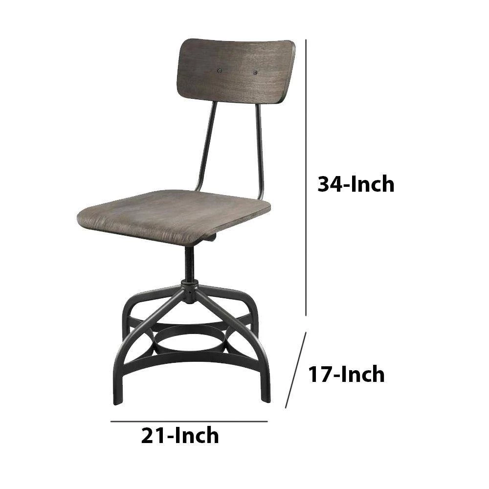 Sit back and enjoy your meal with the inclusion of this sturdily constructed side chairs available as set of 2. Sleek wooden seat with curved panel top back provides ample comfort and support to your back while the curved metal base with geometric support adds to its functionality. Swivel and adjustable mechanism makes it a versatile piece. It adorns your home with an industrial appeal.