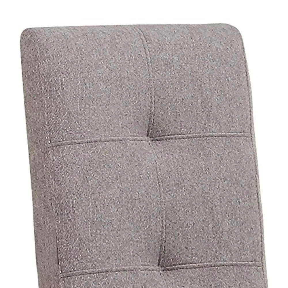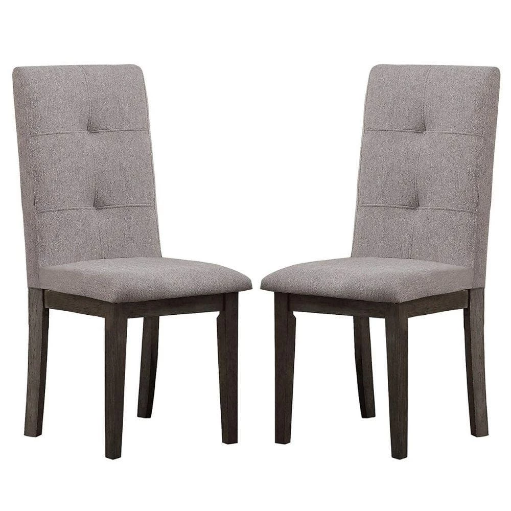 Simple and Sophisticated, this set of two dining chairs with gray upholstery and square tufting creates a space ideal for enjoying food or drink with friends or family. These chairs will complement any modern or transitional style while go well with any dining room, kitchen, entertainment area. Made with a sturdy wood frame for longevity.