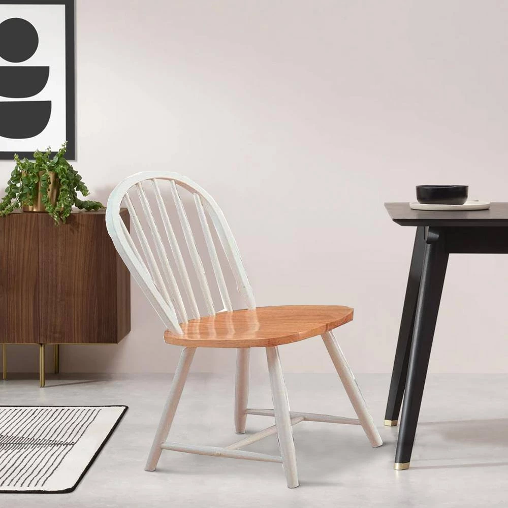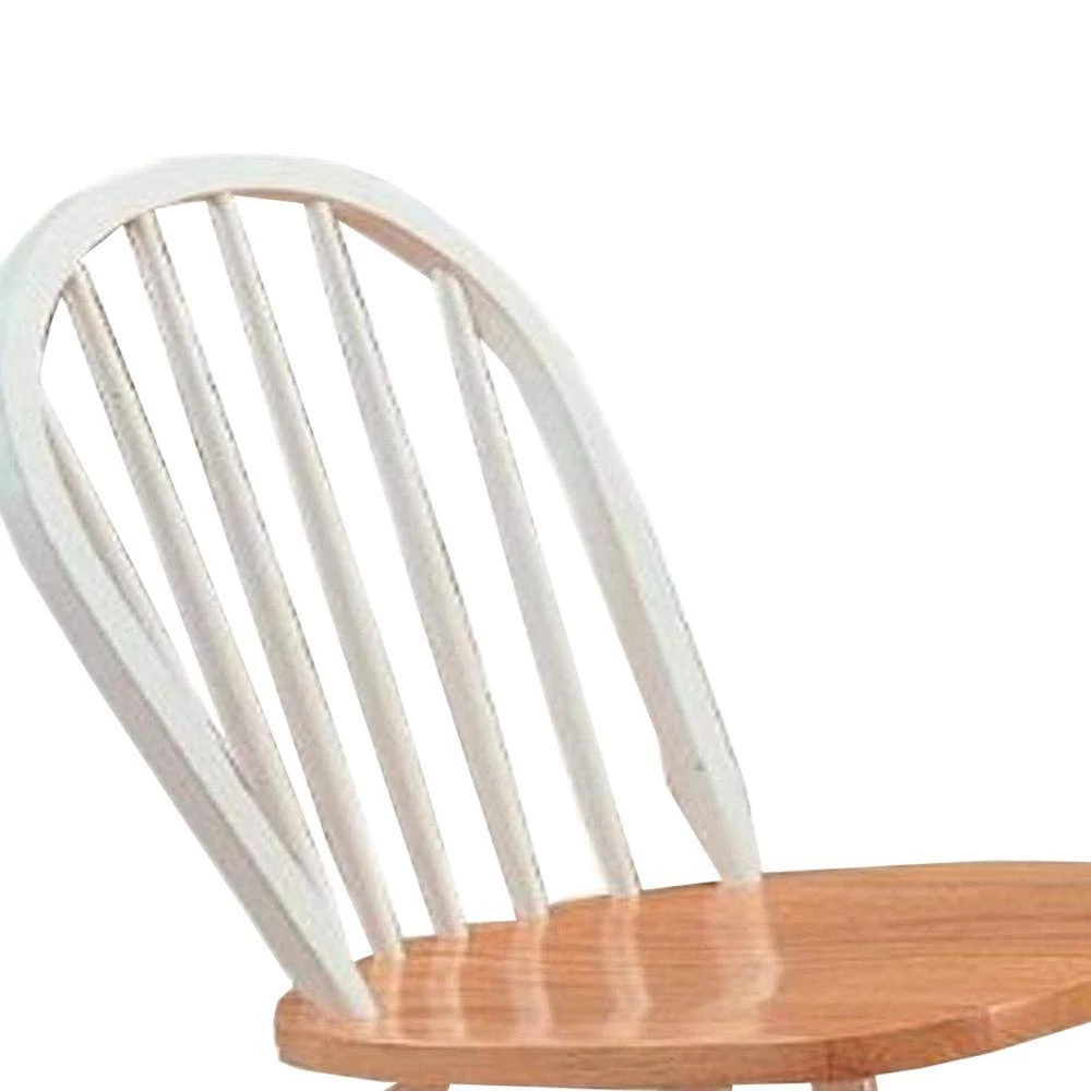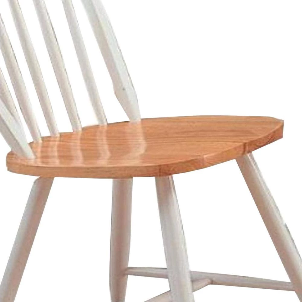This simple and elegant dining chair will give your casual dining room a charming style that you will love. The traditional Windsor style chairs feature classic spindle backs, shapely wooden seats, and simple turned legs. Available in a Natural or lovely 2 tone Natural brown and white finish, this dining chair will blend beautifully with your decor for a warm and inviting space that you will love. It does not include any other featured product other than 4 Dining Chairs. Item Dimensions: 20 in. D x 18 in. W x 37 in. H.