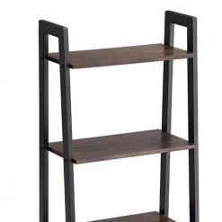 49.2 in. Brown/Black Wood 4-shelf Corner Ladder Bookcase with Open Storage by Benjara