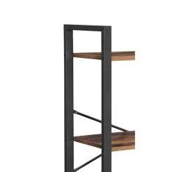 47.2 in. H Rustic Brown and Black Wood and Metal 4-Tier Bookcase with Criss Cross Back by Benjara