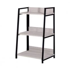 37 in. Washed White and Black Wooden 3-Shelf Bookcase by Benjara