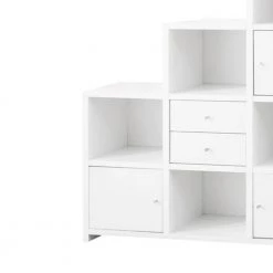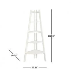 63.25 in. White Wood 5-shelf Corner Ladder Bookcase by Benjara