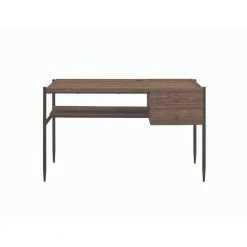 Natural 31.5 in. Brown and Black Wood and Metal 2-Piece Executive Desk Set With Bench by Benjara
