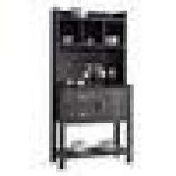 33 in. H Brown and Black Wood and Metal Bakers Rack with 4-Shelves and Wire Basket by Benjara