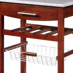 Spacious Gray and Brown Wooden Kitchen Island with Granite Inlaid Top by Benjara