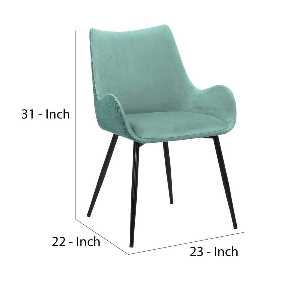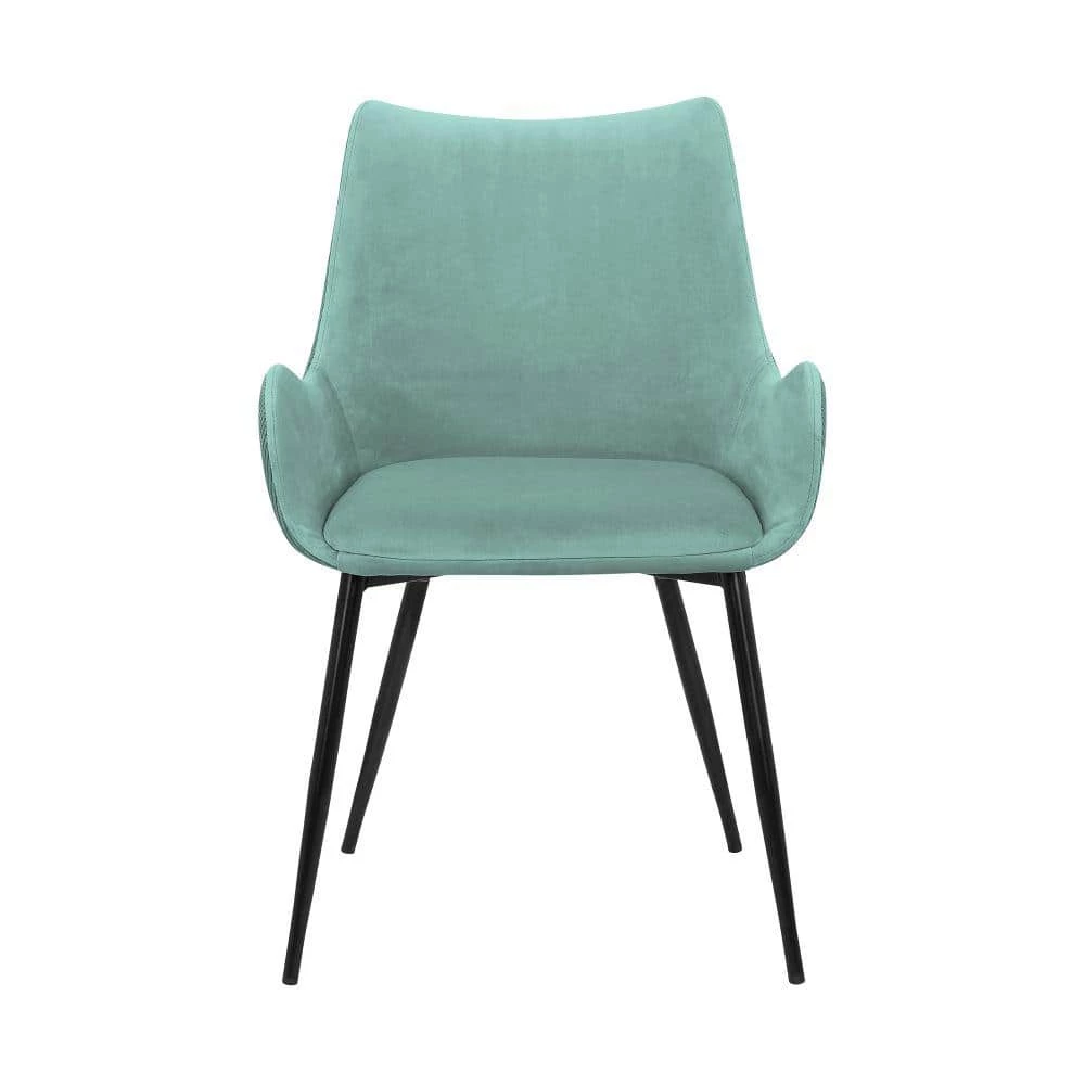 Regal and royal in appeal, this dining chair is here to allow you to sit back and relax for a while. Upholstered in soft fabric, it has curved back and sleek cushioned seat that allows 1 to sit back and relax. Accentuated in a golden hue, it has angled metal legs for stability and stable.