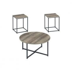16.13 in. H Gray and Brown Wooden Table Set with Sturdy Metal Base (Set of 3) by Benjara