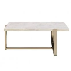 44 in. White/Gold Large Rectangle Marble Coffee Table with Metal Base with Storage by Benjara