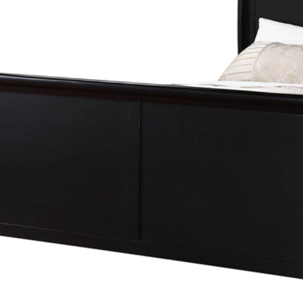 - Bed has a slight high rectangular head board and a slightly lower foot board in stunning black colour
