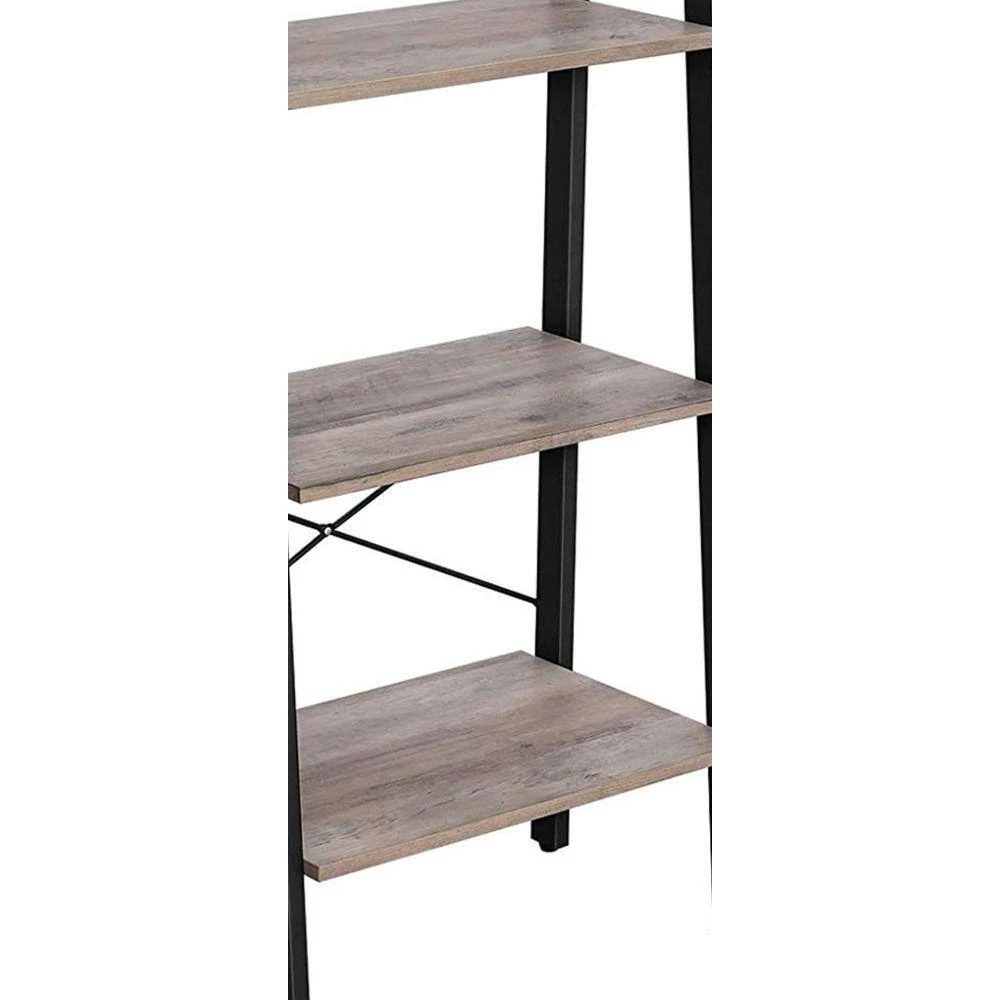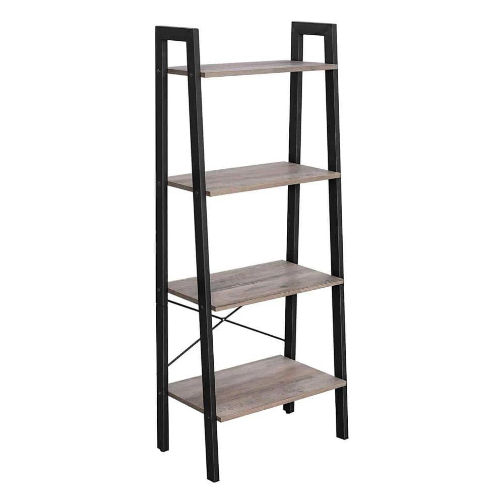 Provide a sophisticated abode to all your books and decor items by bringing in this ladder style Bookcase which comes with 4 tier storage space and showcases grain details. Constructed from the amalgamation of particle board and Iron. It is accented with taupe gray and black finish.