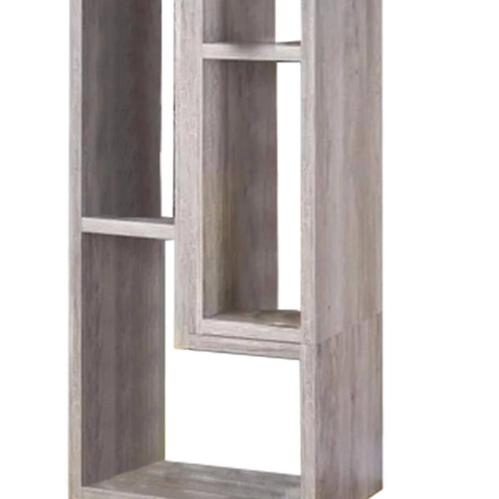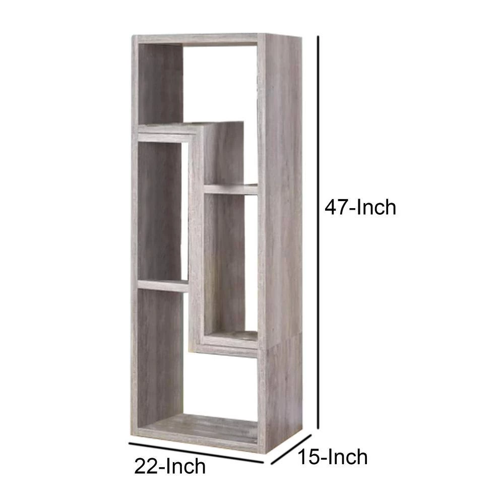 Featuring a modern design and sleek outlook, this bookcase is perfect for contemporary interiors. It’s grid-like pattern offers a generous amount of space for storage and complements your home decor so as to add a dash of class to your surroundings. Combined with a wooden structure and single toned weathered gray finish, this piece of furniture is both durable and stylish.