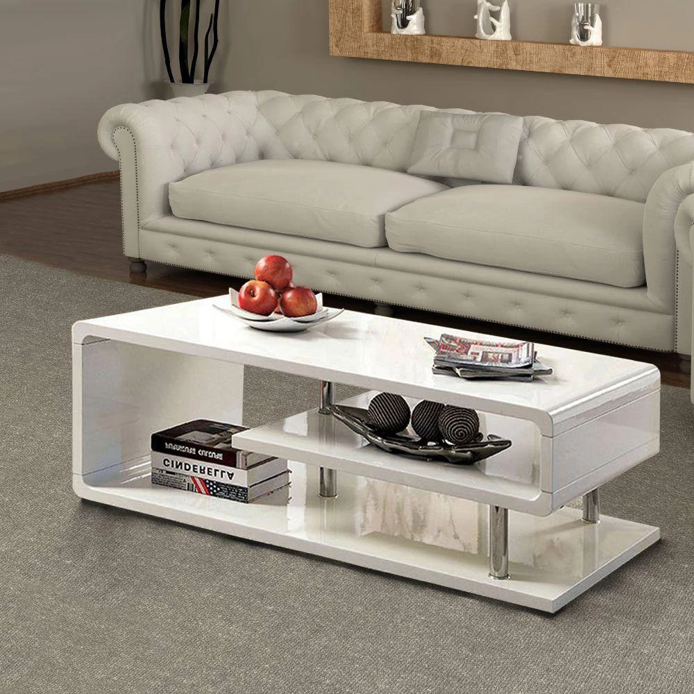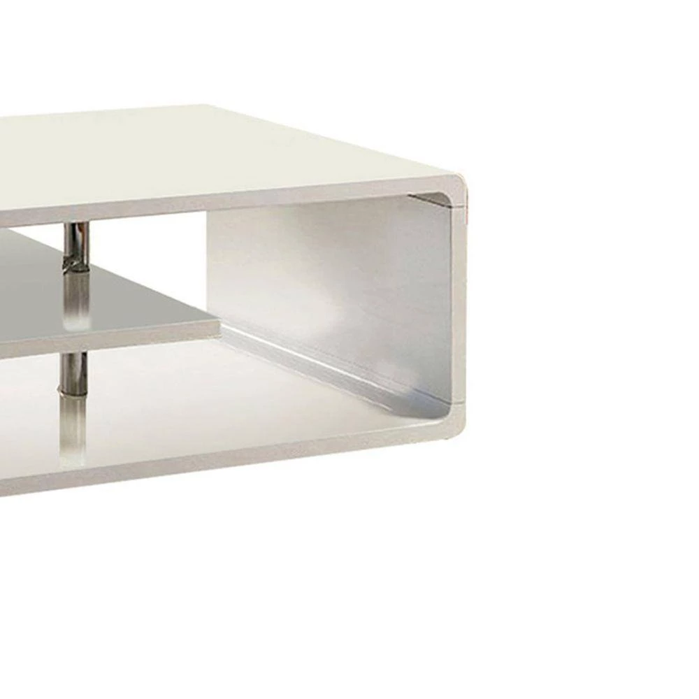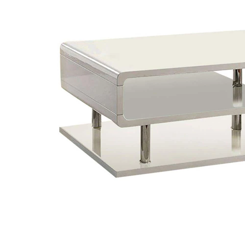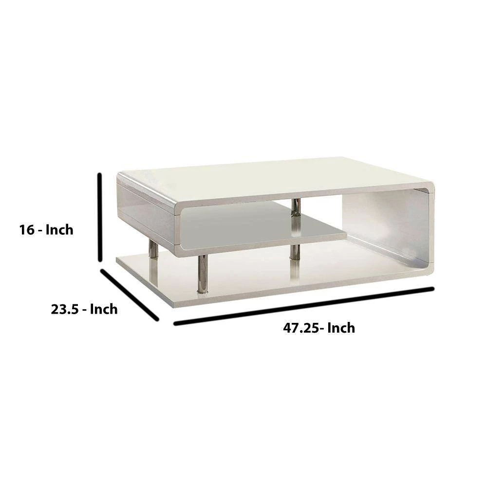 Improve the aesthetics of your living space with the inclusion of this sophisticated and elegant coffee table. Constructed rom from solid wood, it features a spiral design that extends to form an open bottom shelf and a curling shelf. It incorporates metal poles, holding the upper shelf firmly.