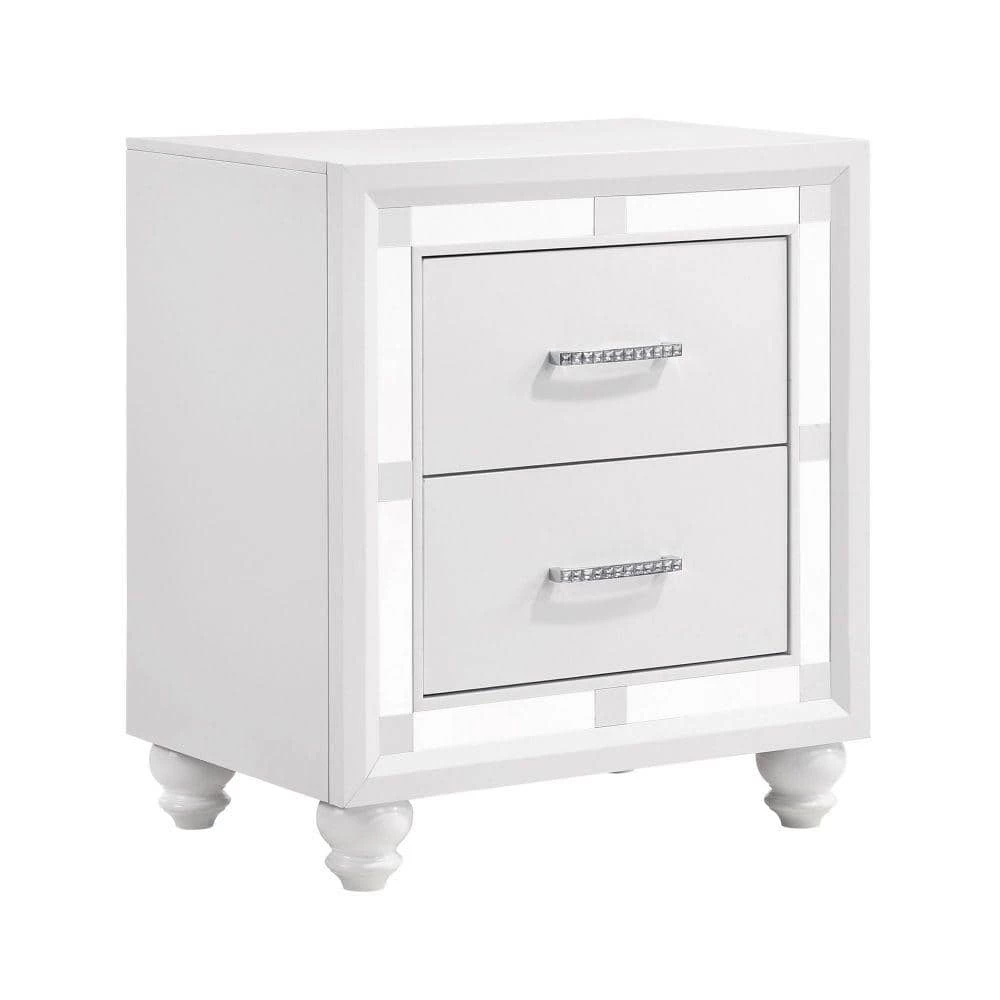 A sleek addition to any bedside, this wood 2-drawer nightstand is made from premium quality wood and is completed with a crisp white finish. Equipped with whisper quiet gliding drawers, the top 2-drawers are lined with black felt, making it a perfect place for keeping jewelry and cherished possessions. Check out our Pia collection for matching items.