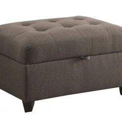 Gray Tufted Linen Upholstered Wooden Ottoman with Storage by Benjara
