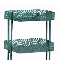 52 in. W Silver and Blue Tufted Fabric Bench with Mirror Accents and Turned Legs by Benjara