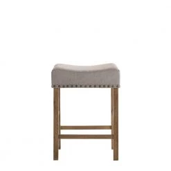 26 in. H Brown and Gray Fabric Upholstered Wooden Counter Height Stool (Set of 2) by Benjara