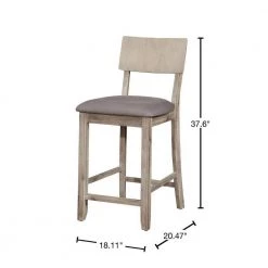 37.6 in. H Gray Washed Wooden Counter Stool with Curved Backrest and Padded Seat by Benjara