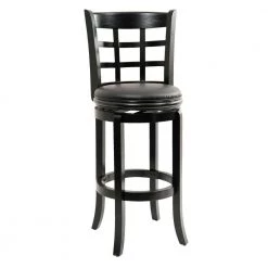 Sabi 43.5 in. Black High Back Solid Wood Swivel Counter Bar Stool with Faux Leather by Benjara