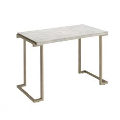 Contemporary 18 in. W White and Gold Metal Frame Sofa Table with Faux Marble Top by Benjara